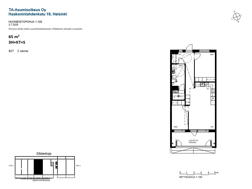 B 27 3h+kt+s 65,0 m² 2/9 Kerrostalo
