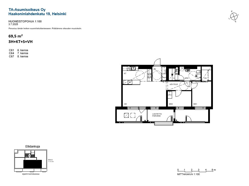 C 61 3h+kt+s 69,5 m² 6/9 Kerrostalo