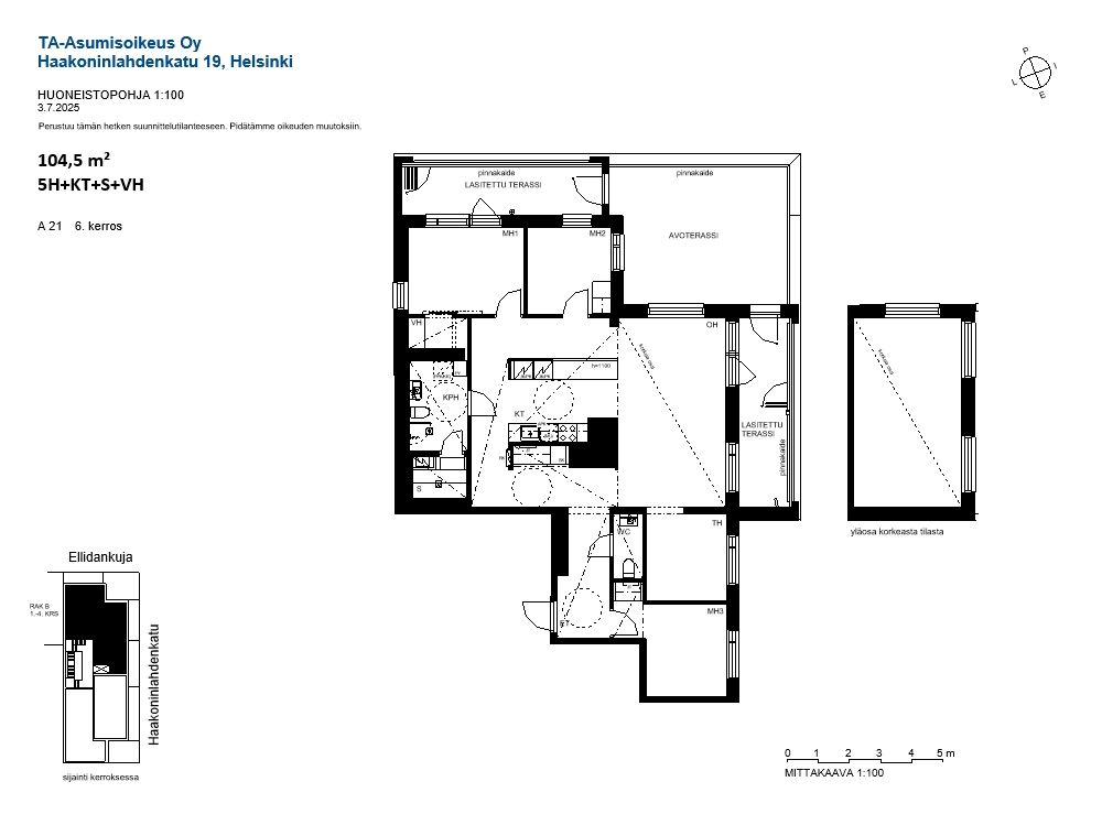 A 21 5h+kt+s 104,5 m² 6/9 Kerrostalo