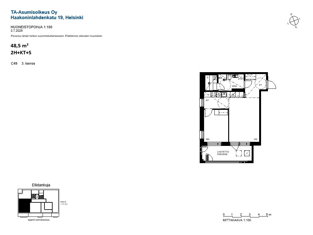 C 49 2h+kt+s 48,5 m² 3/9 Kerrostalo