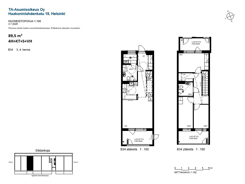 B 34 4h+kt+s 89,5 m² 3-4/9 Kerrostalo