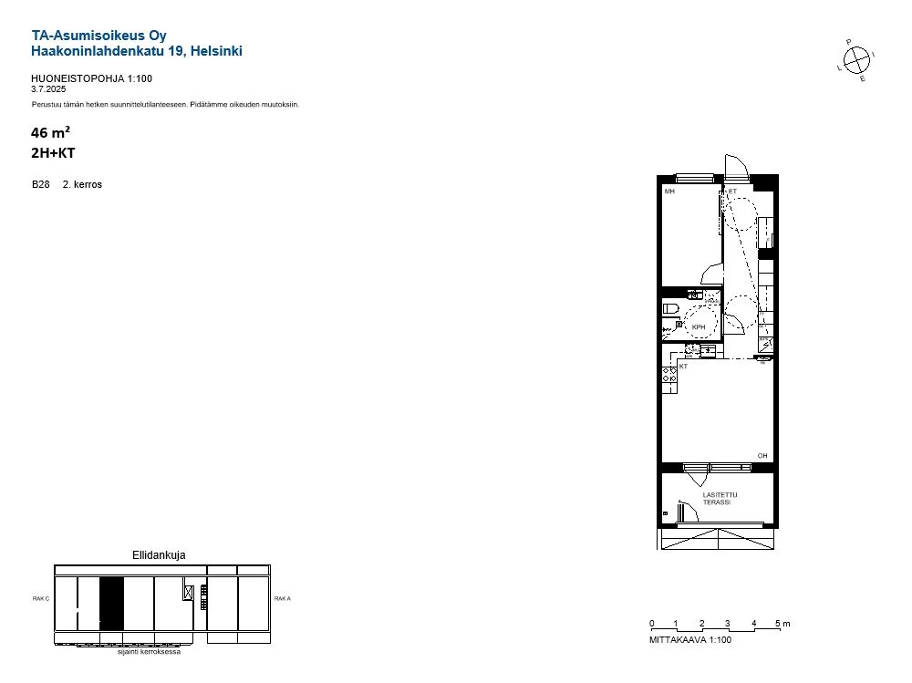 B 28 2h+kt 46,0 m² 2/9 Kerrostalo