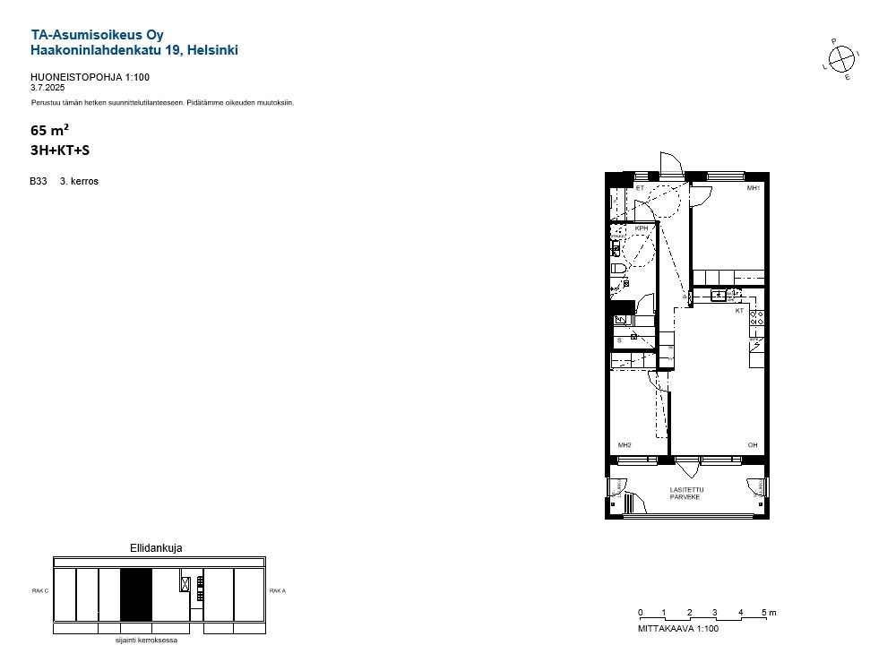 B 33 3h+kt+s 65,0 m² 3/9 Kerrostalo