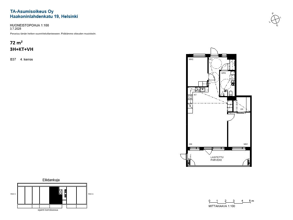 B 37 3h+kt 72,0 m² 4/9 Kerrostalo