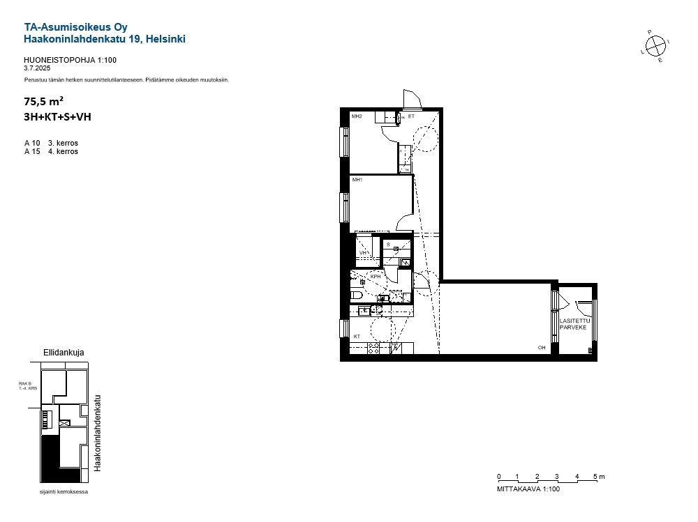 A 10 3h+kt+s 75,5 m² 3/9 Kerrostalo