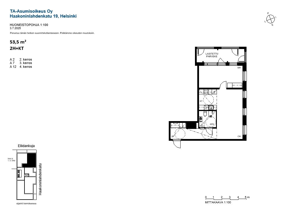 A 7 2h+kt 53,5 m² 3/9 Kerrostalo