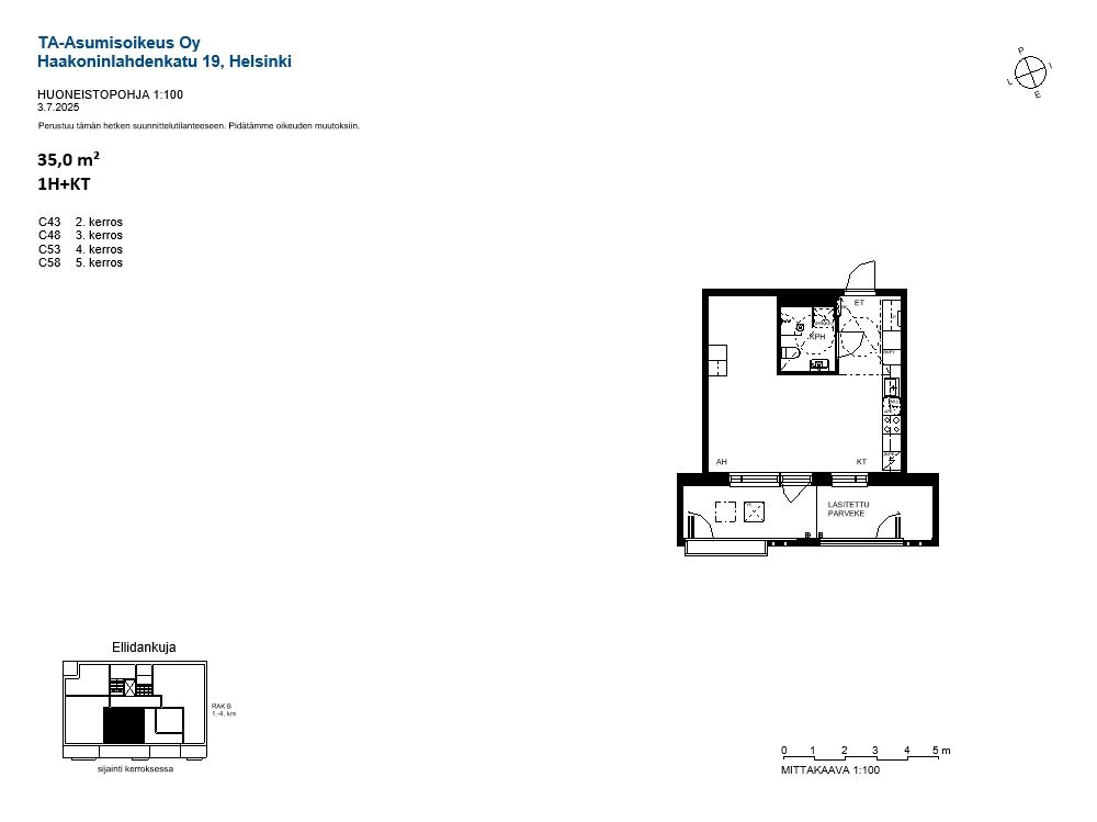 C 58 1h+kt 35,0 m² 5/9 Kerrostalo