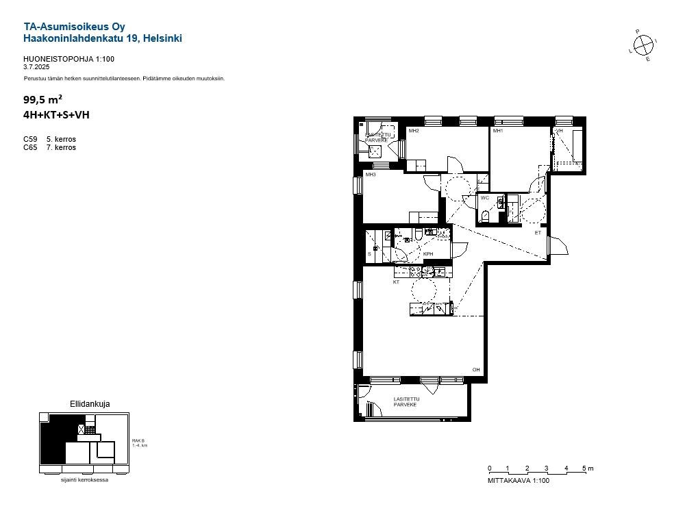 C 65 4h+kt+s 99,5 m² 7/9 Kerrostalo