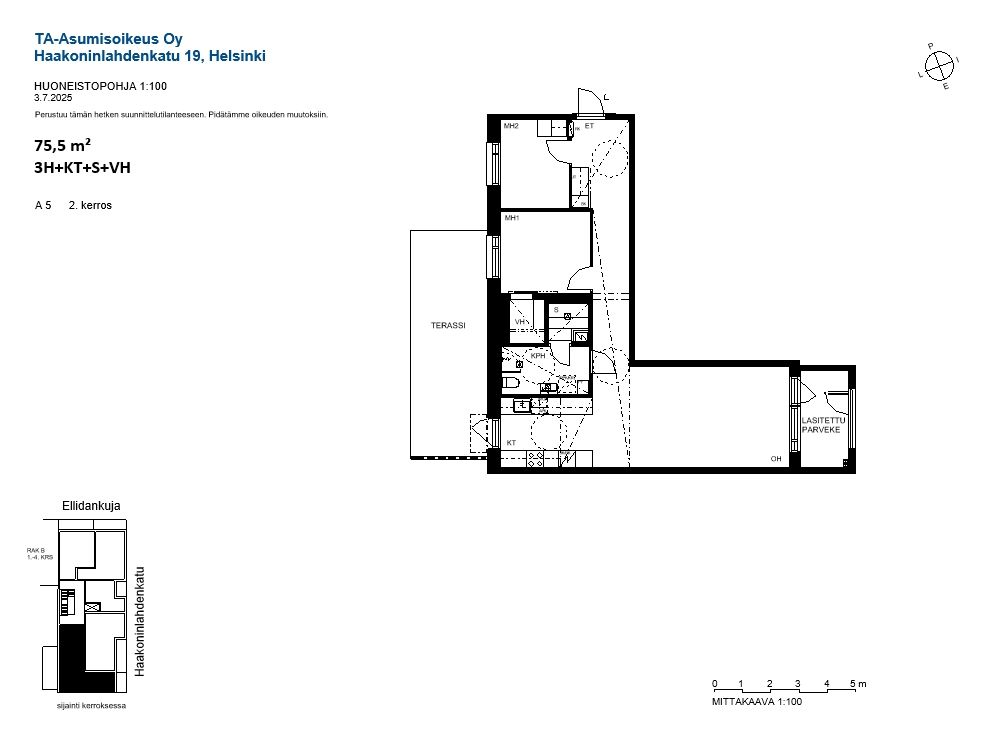 A 5 3h+kt+s 75,5 m² 2/9 Kerrostalo