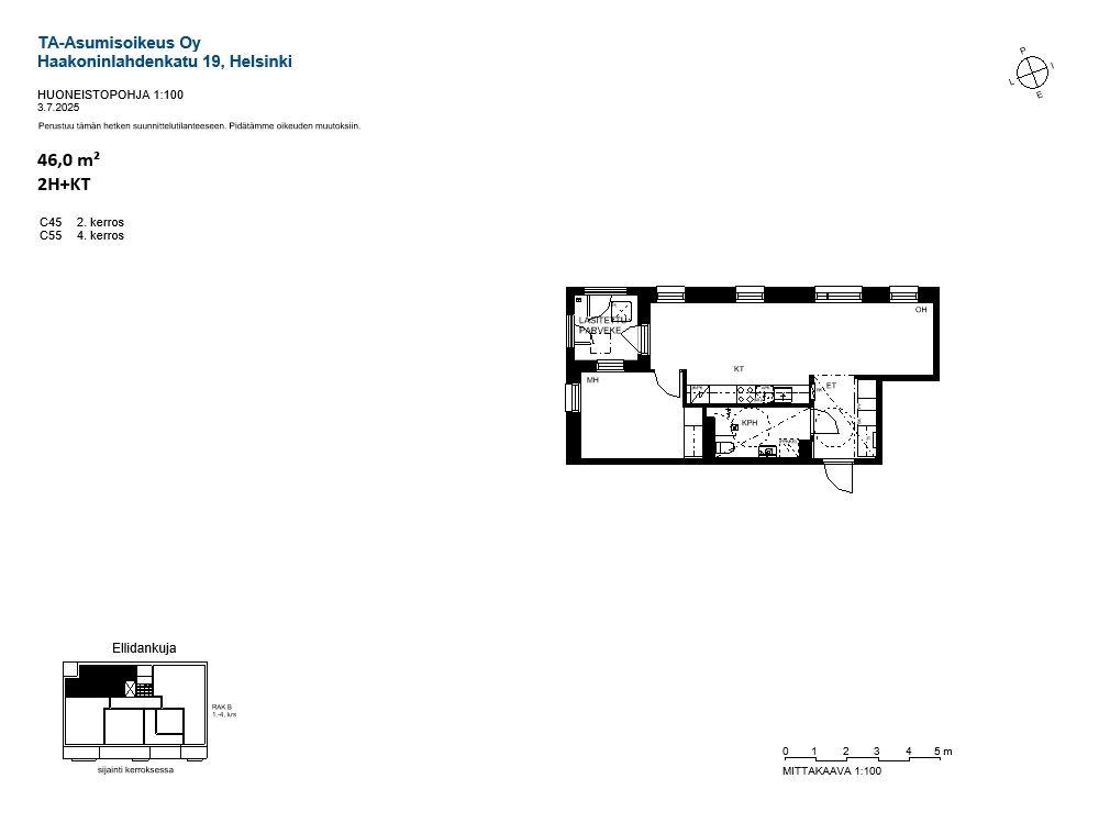 C 45 2h+kt 46,0 m² 2/9 Kerrostalo