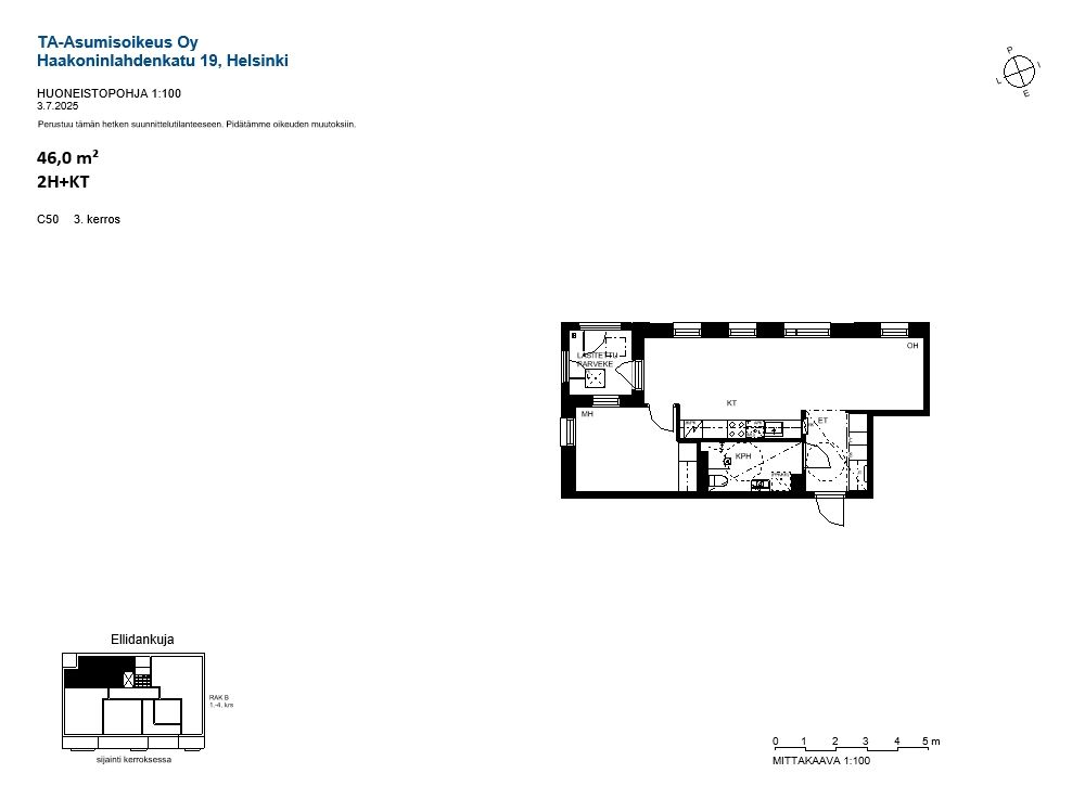 C 50 2h+kt 46,0 m² 3/9 Kerrostalo