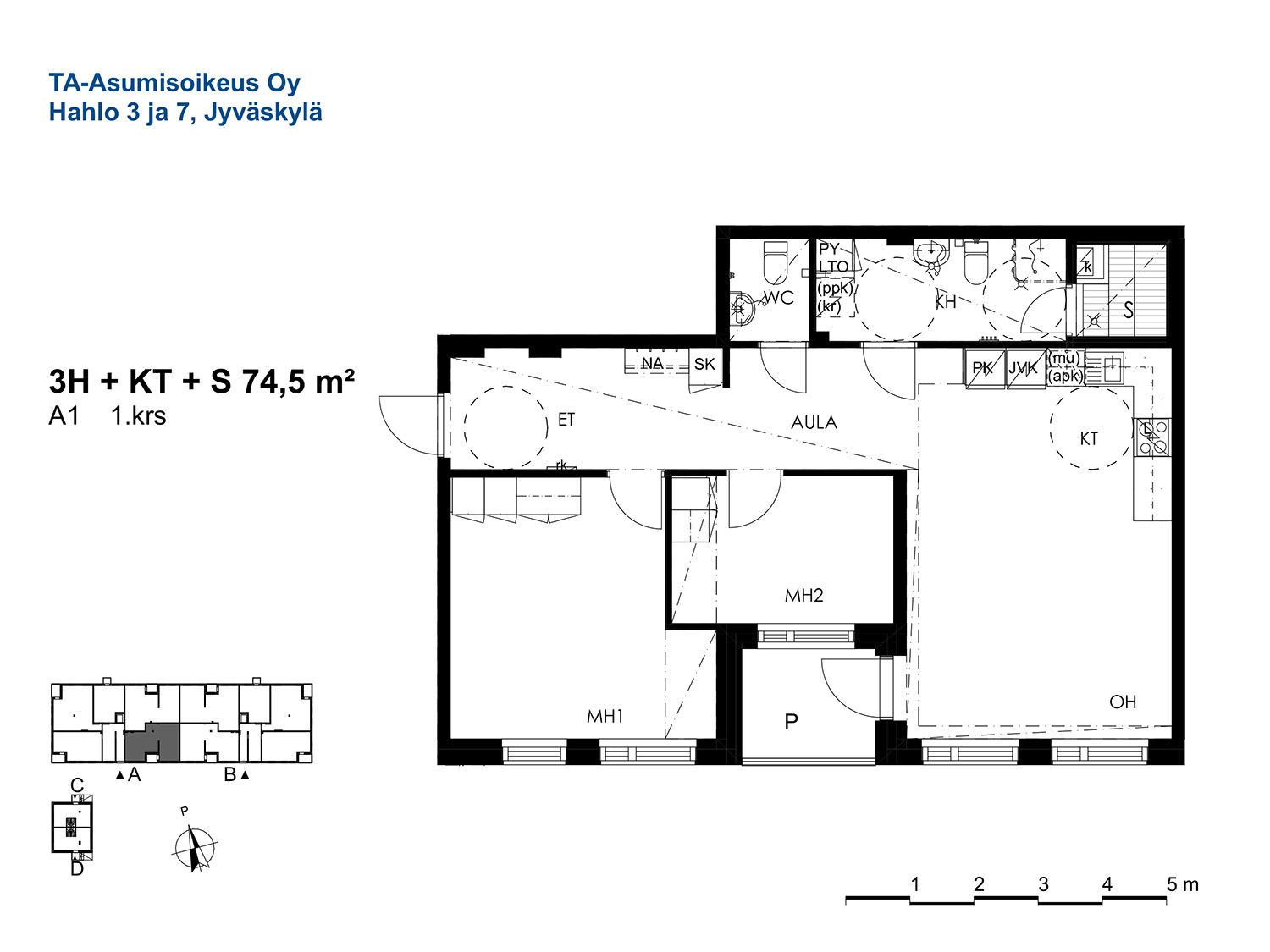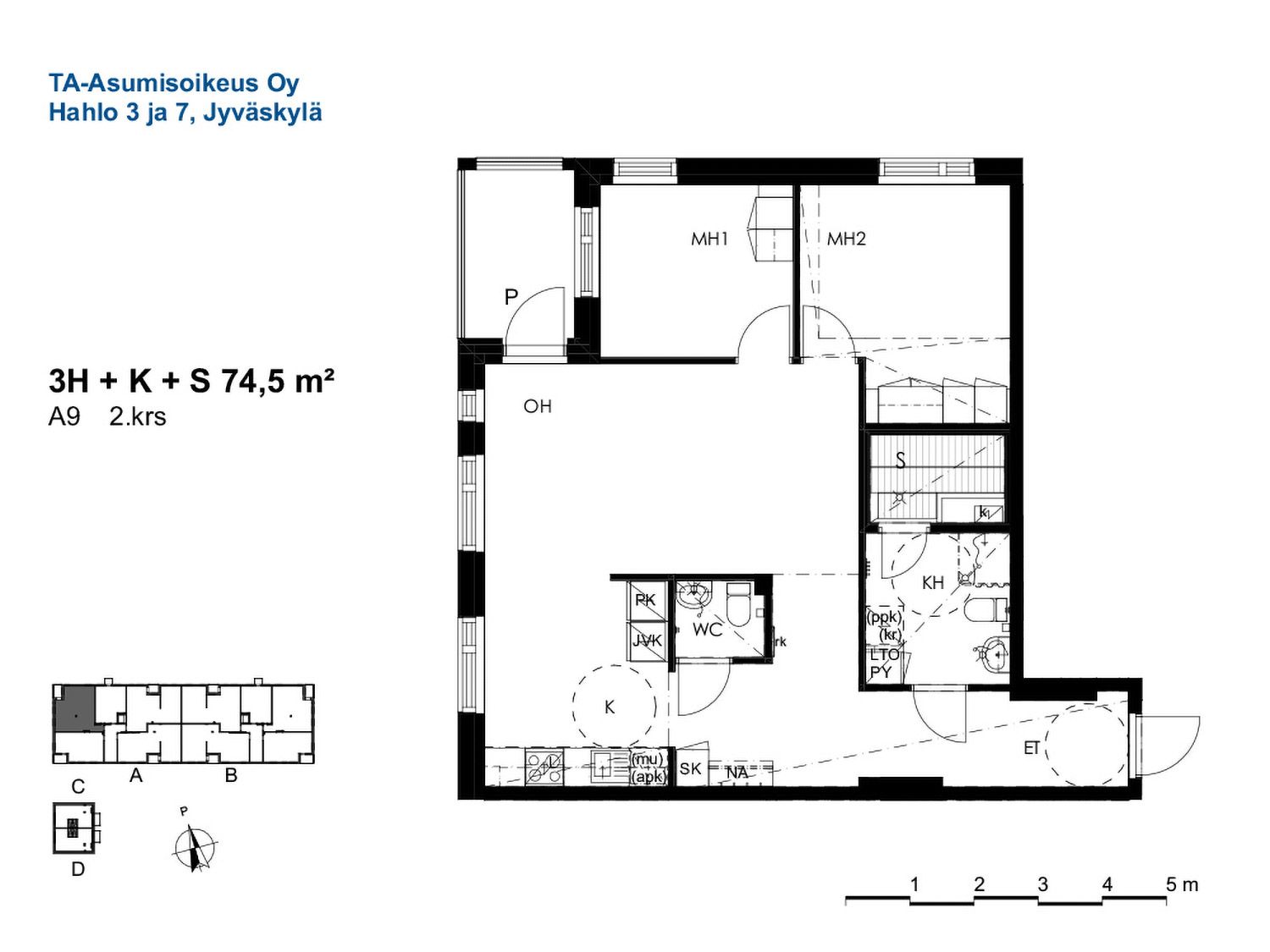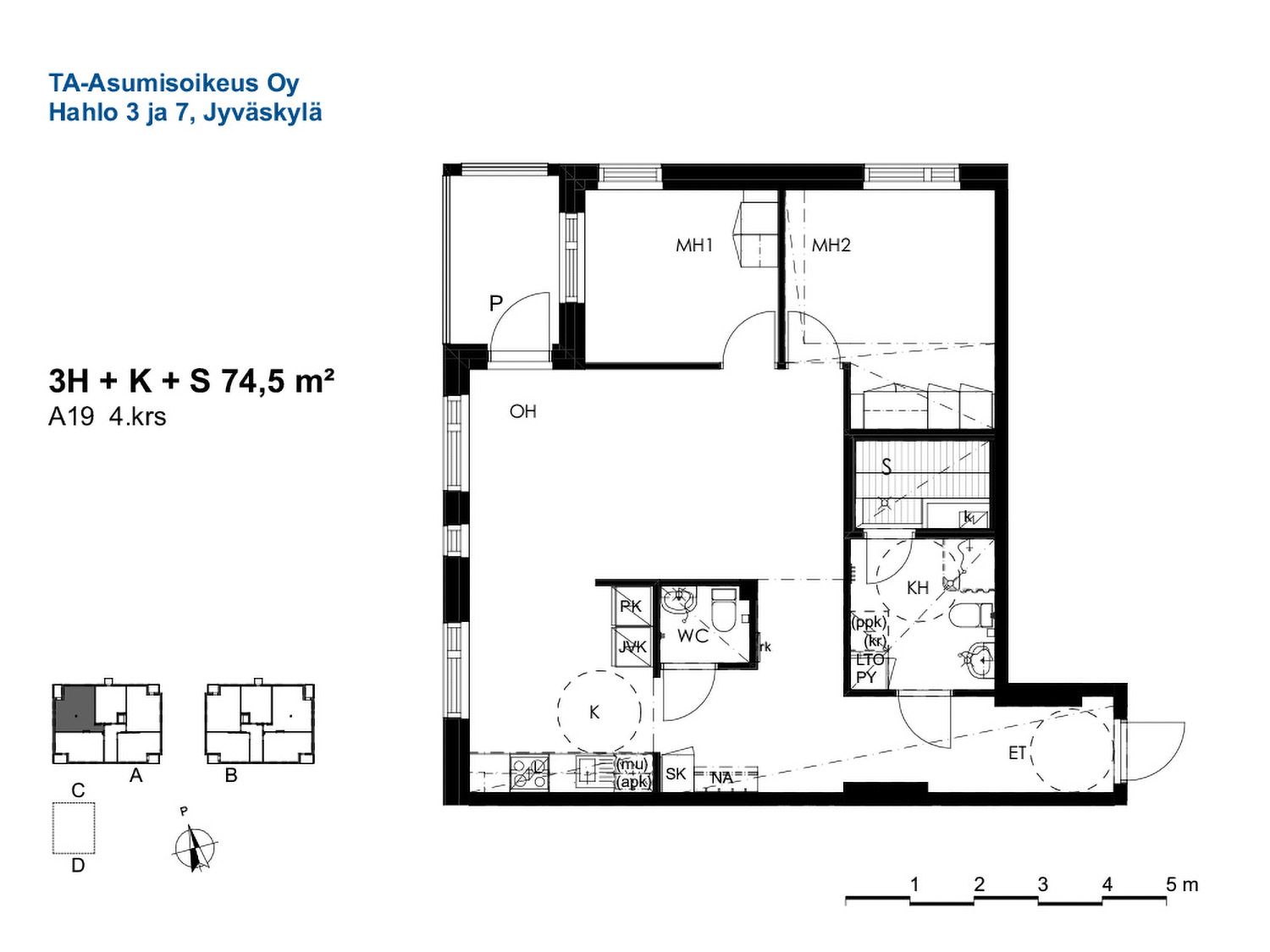 3h+kt+s, 74,5-81,5 m² (2 kpl)