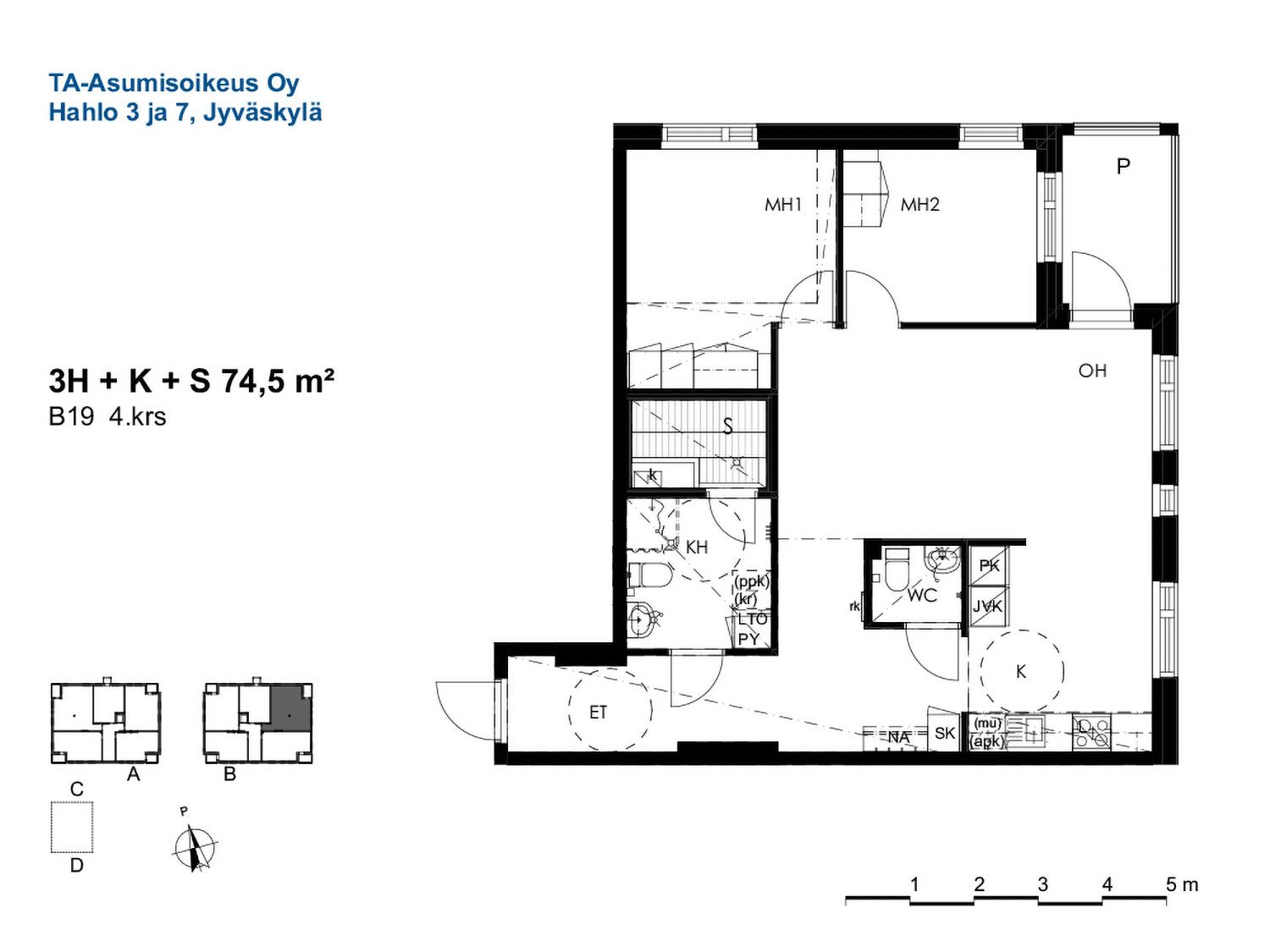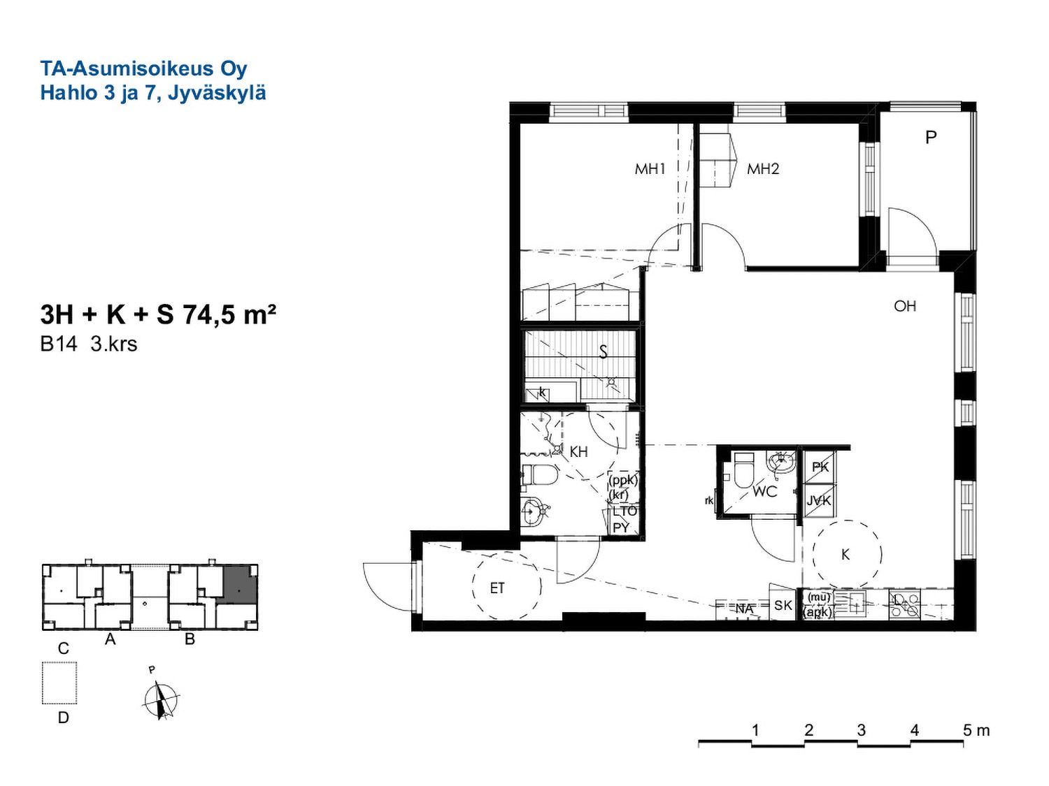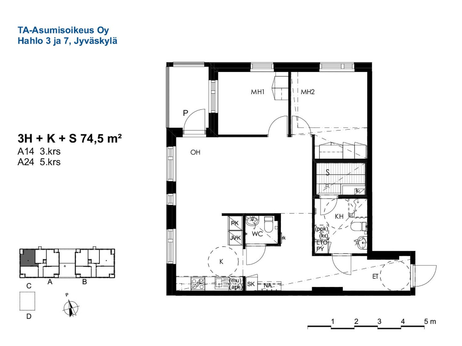 3h+kt+s, 74,5-81,5 m² (2 kpl)