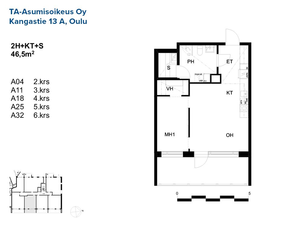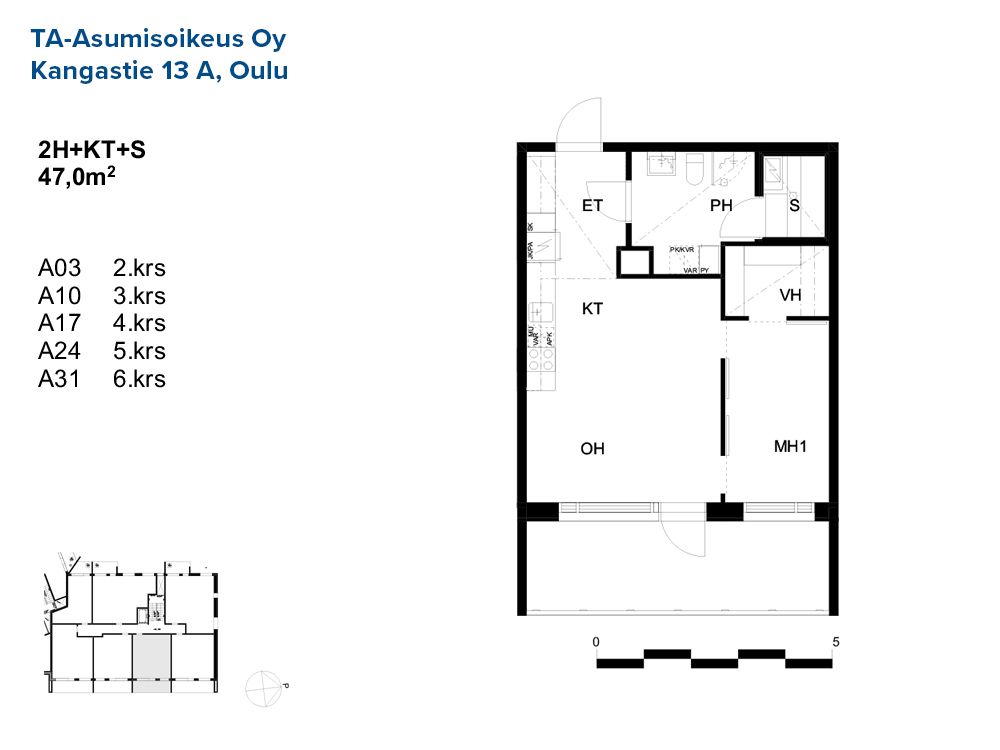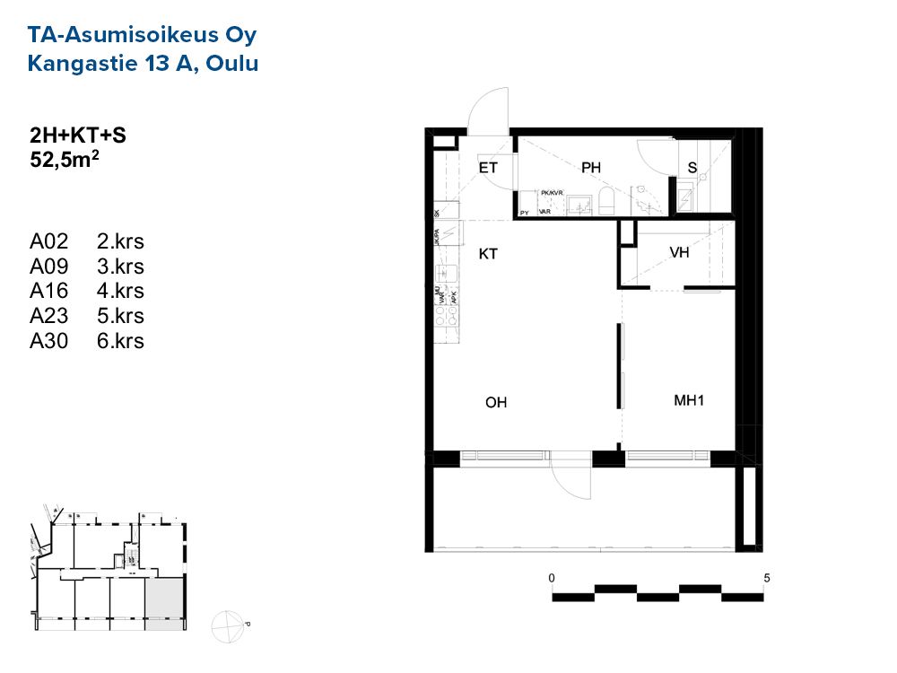 2h+kt+s / 52,5 m² / 5 kpl