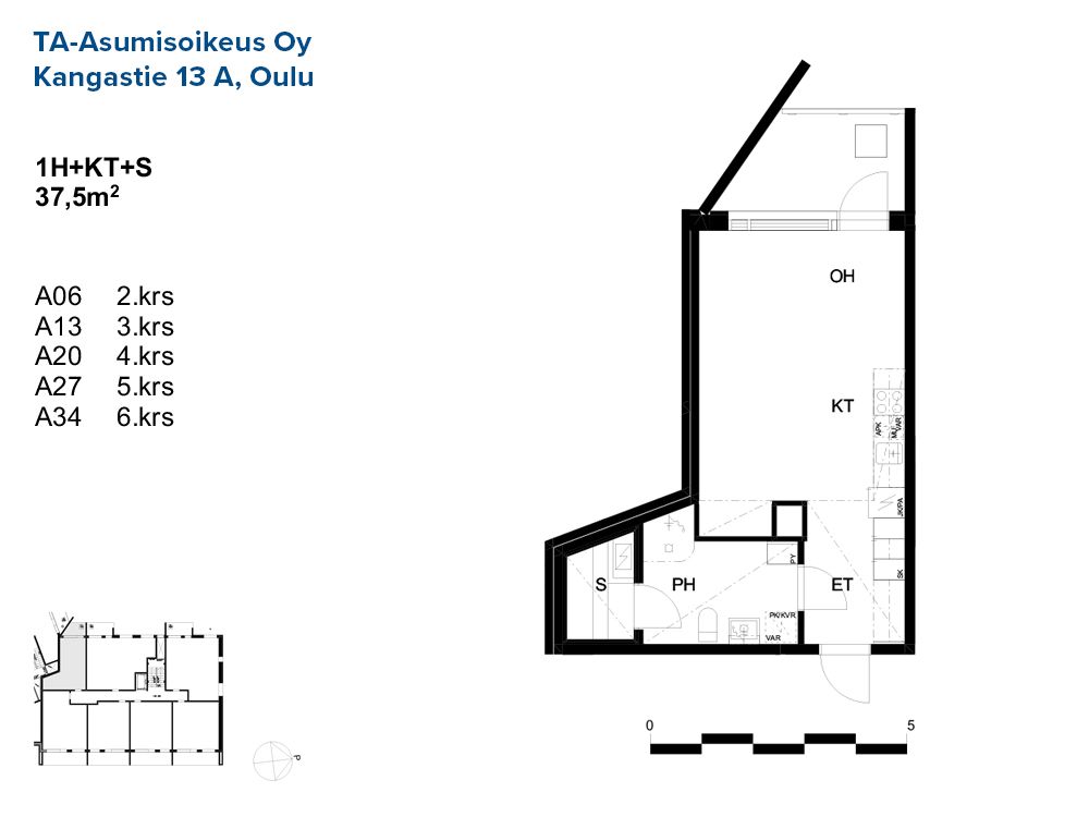 1h+kt+s / 37,5 m² / 5 kpl
