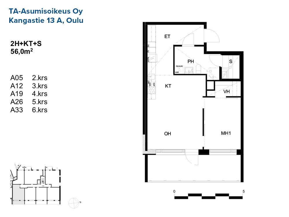 2h+kt+s / 56,0 m² / 5 kpl