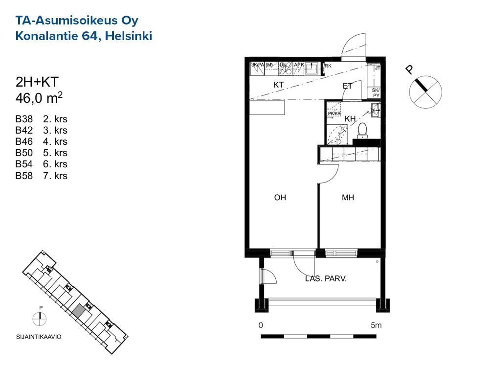 B 50 2h+kt 46,0 m² 5/8 Kerrostalo