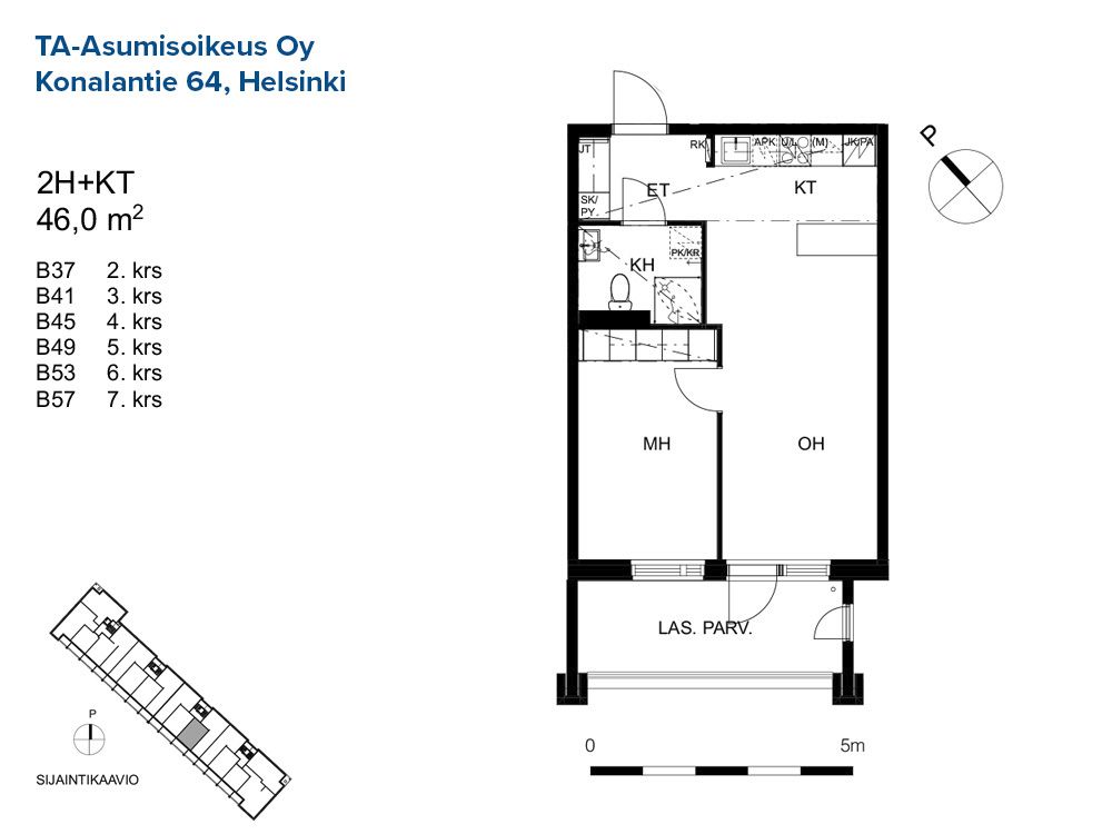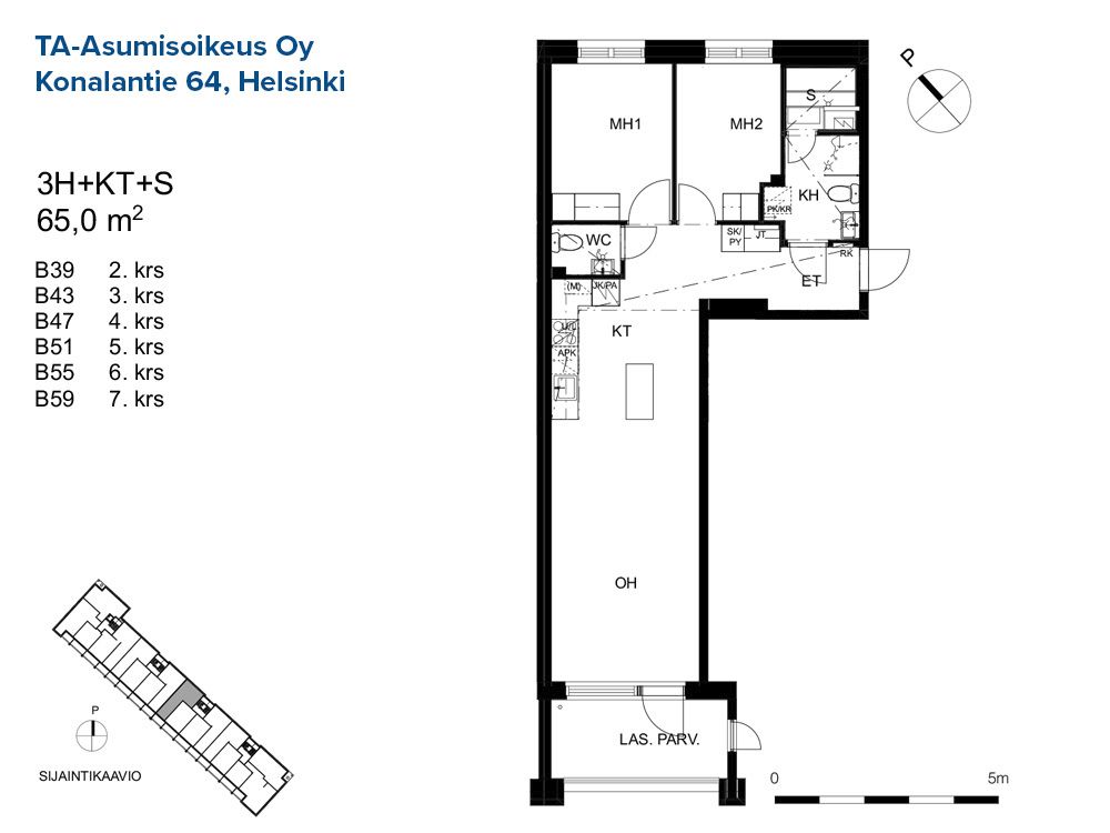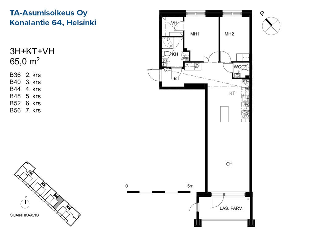 B 48 3h+kt 65,0 m² 5/8 Kerrostalo