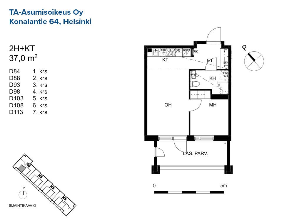 D 103 2h+kt 37,0 m² 5/8 Kerrostalo
