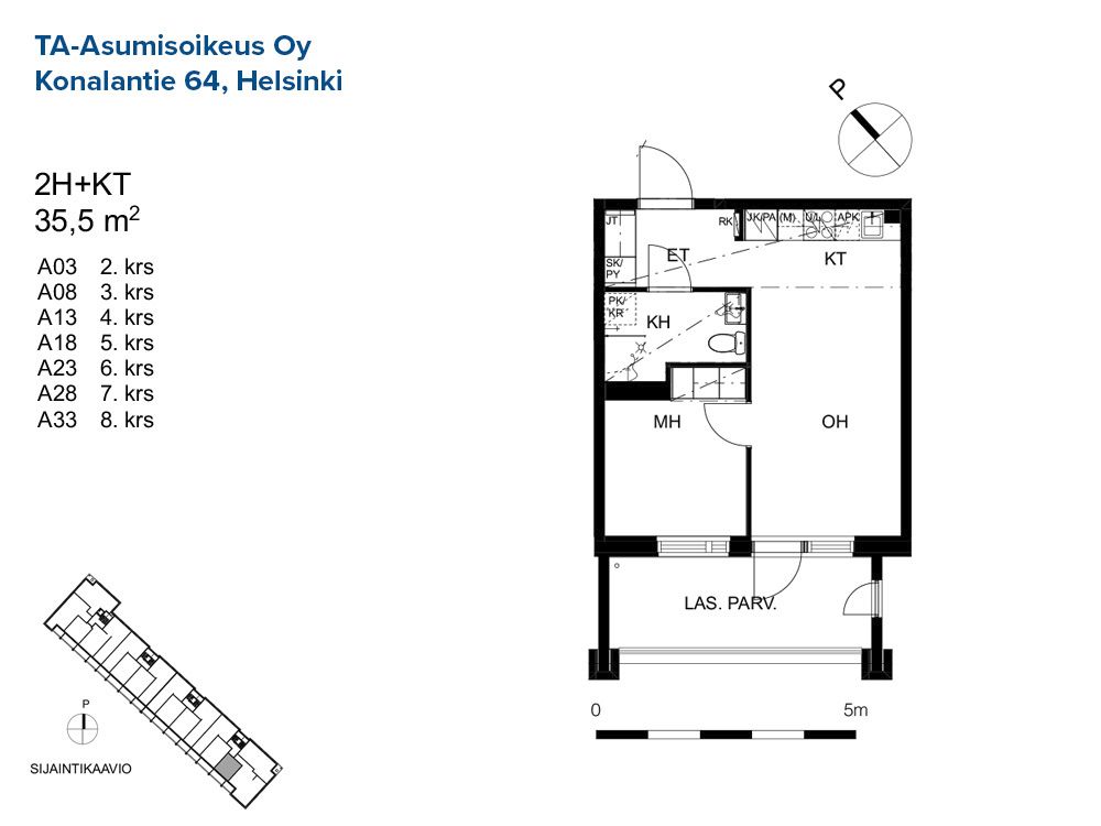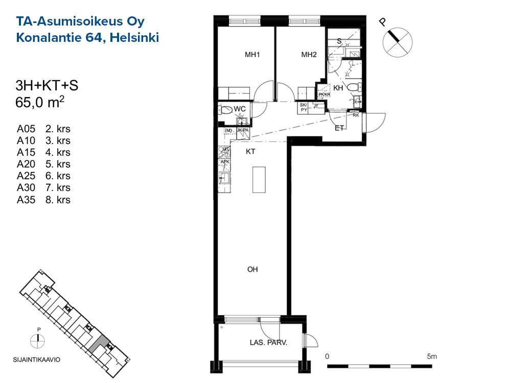 A 5 3h+kt+s 65,0 m² 2/8 Kerrostalo