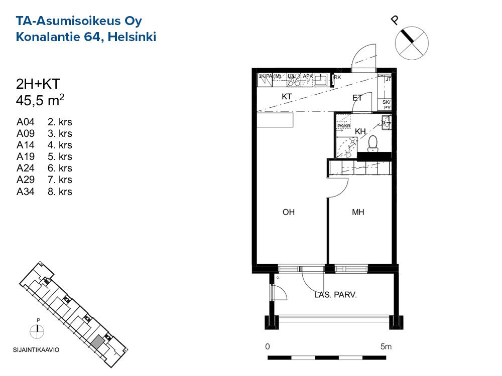 C 74 2h+kt 45,5 m² 5/8 Kerrostalo