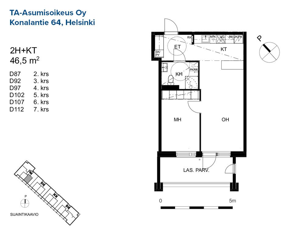 D 102 2h+kt 46,5 m² 5/8 Kerrostalo