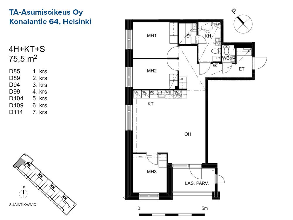 D 104 4h+kt+s 75,5 m² 5/8 Kerrostalo