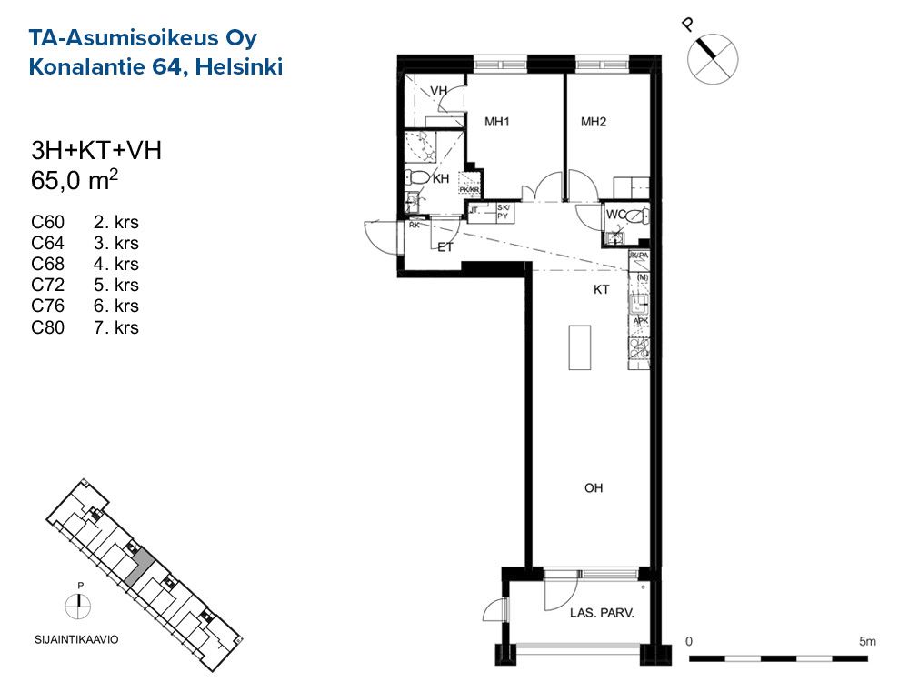 C 60 3h+kt 65,0 m² 2/8 Kerrostalo