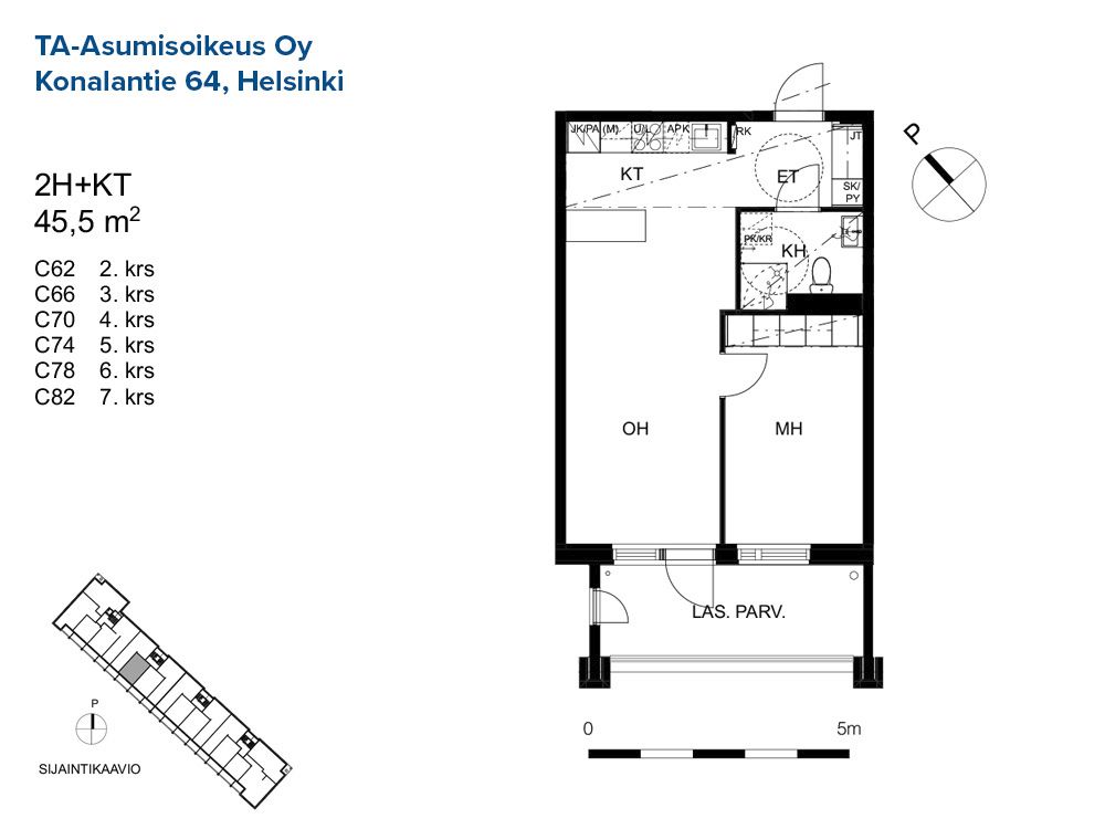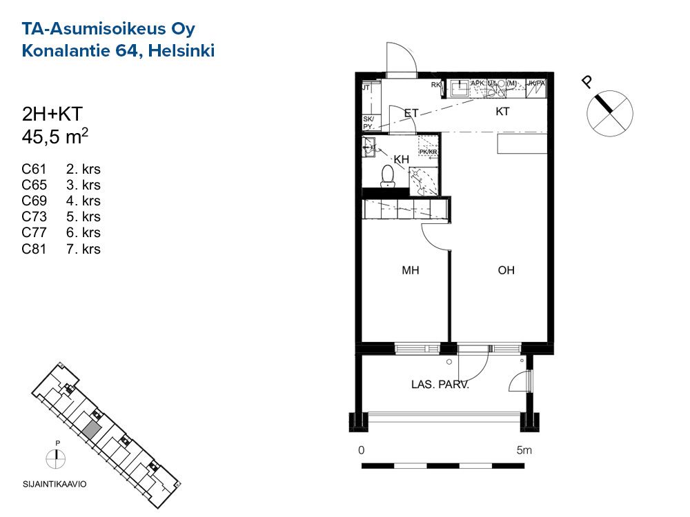 C 73 2h+kt 45,5 m² 5/8 Kerrostalo