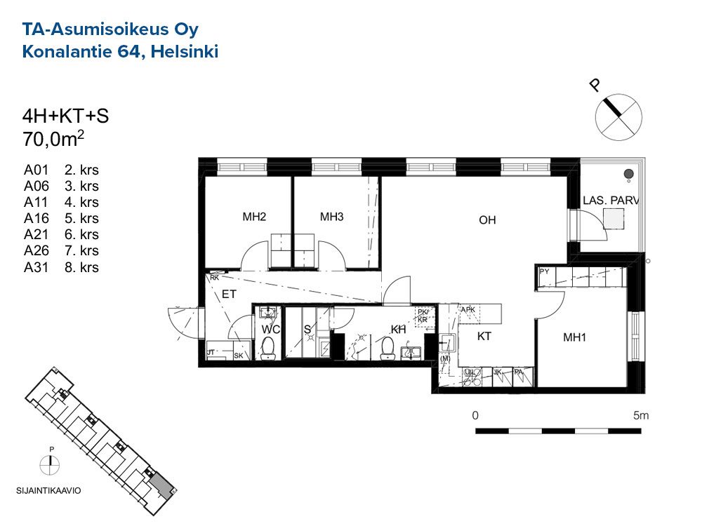 A 16 4h+kt+s 70,0 m² 5/8 Kerrostalo