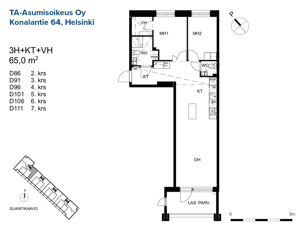 D 101 3h+kt 65,0 m² 5/8 Kerrostalo
