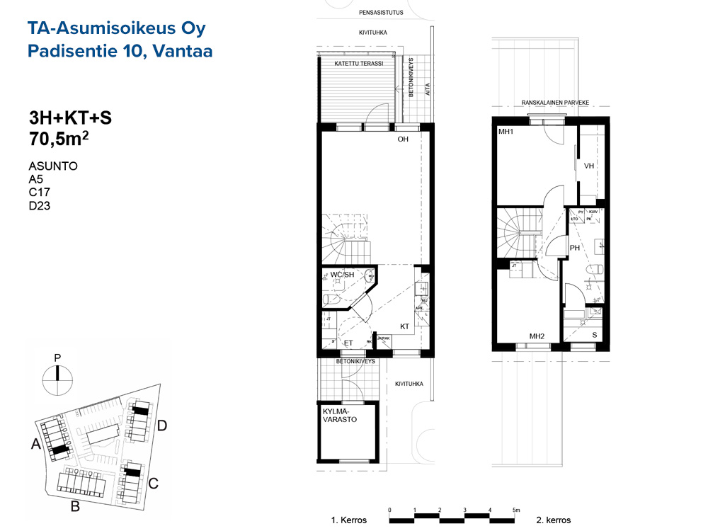 A 5 3h+kt+s 70,5 m² 1-2/2 Rivitalo