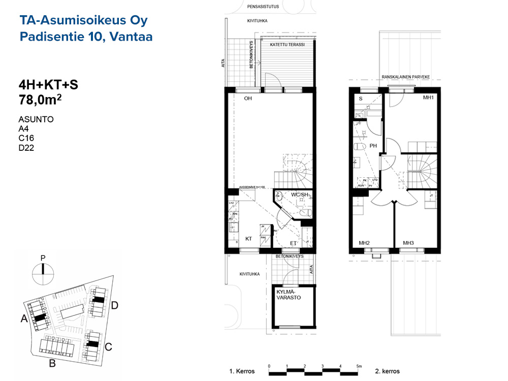 A 4 4h+kt+s 78,0 m² 1-2/2 Rivitalo