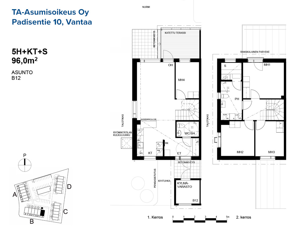 B 12 5h+kt+s 96,0 m² 1-2/2 Rivitalo