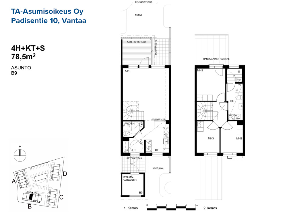 B 9 4h+kt+s 78,5 m² 1-2/2 Rivitalo