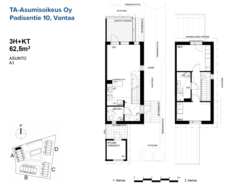 A 1 3h+kt 62,5 m² 1-2/2 Rivitalo