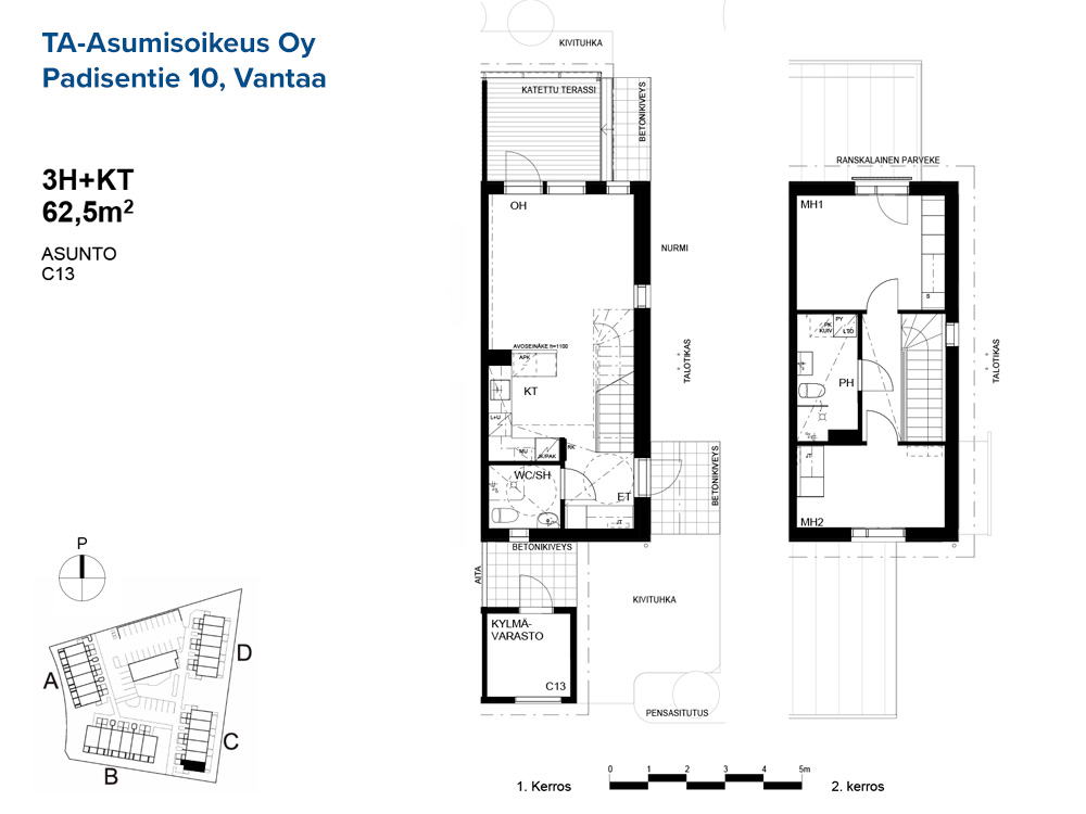 C 13 3h+kt 62,5 m² 1-2/2 Rivitalo