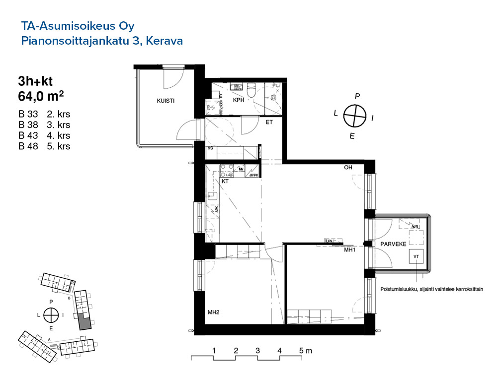B 48 3h+kt 64,0 m² 5/5 Luhtitalo