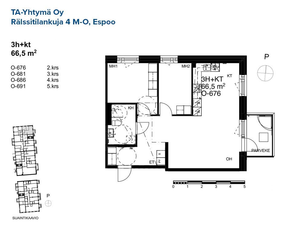 3h+kt, 64,5-66,5 m² (9 kpl)