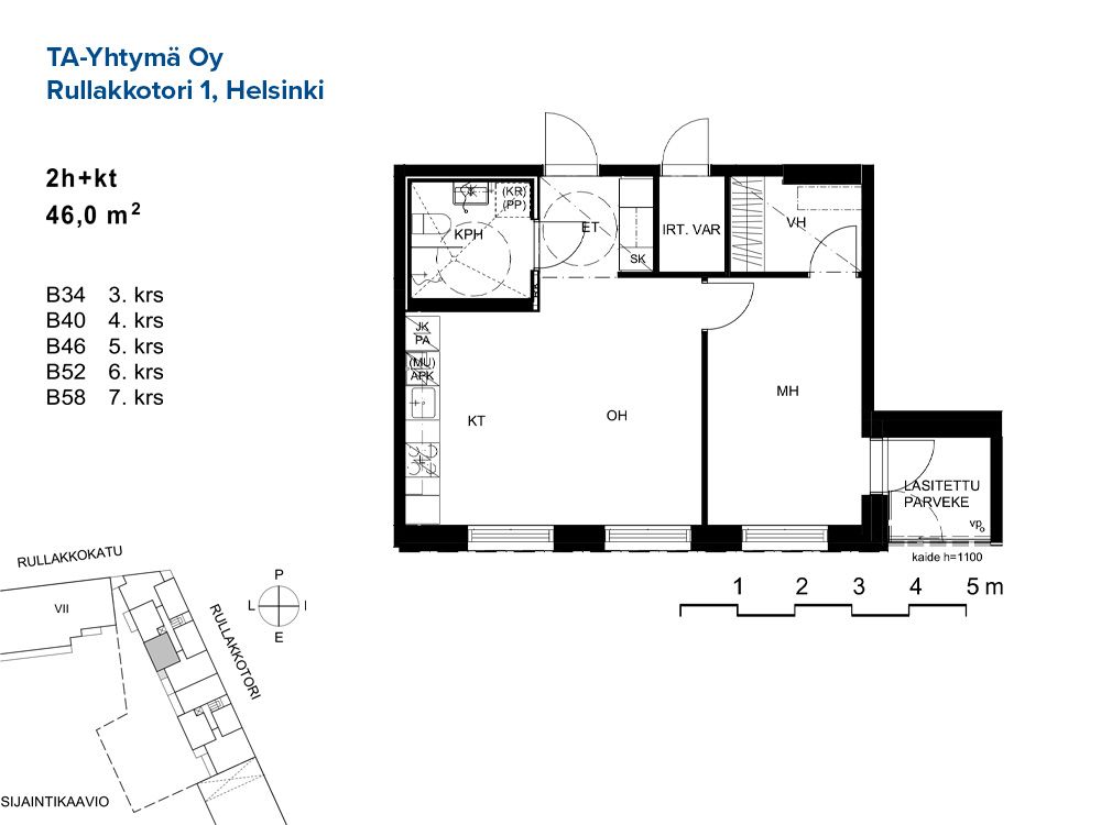 B 46 2h+kt 46,0 m² 5/8 Kerrostalo