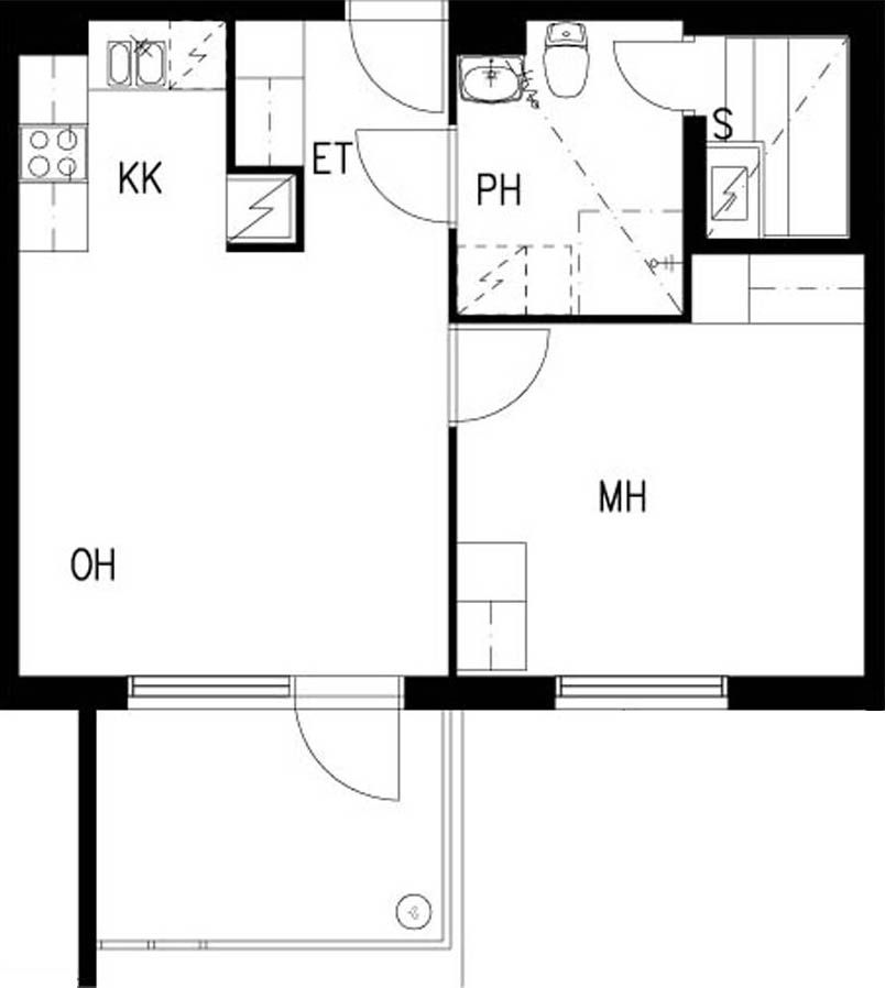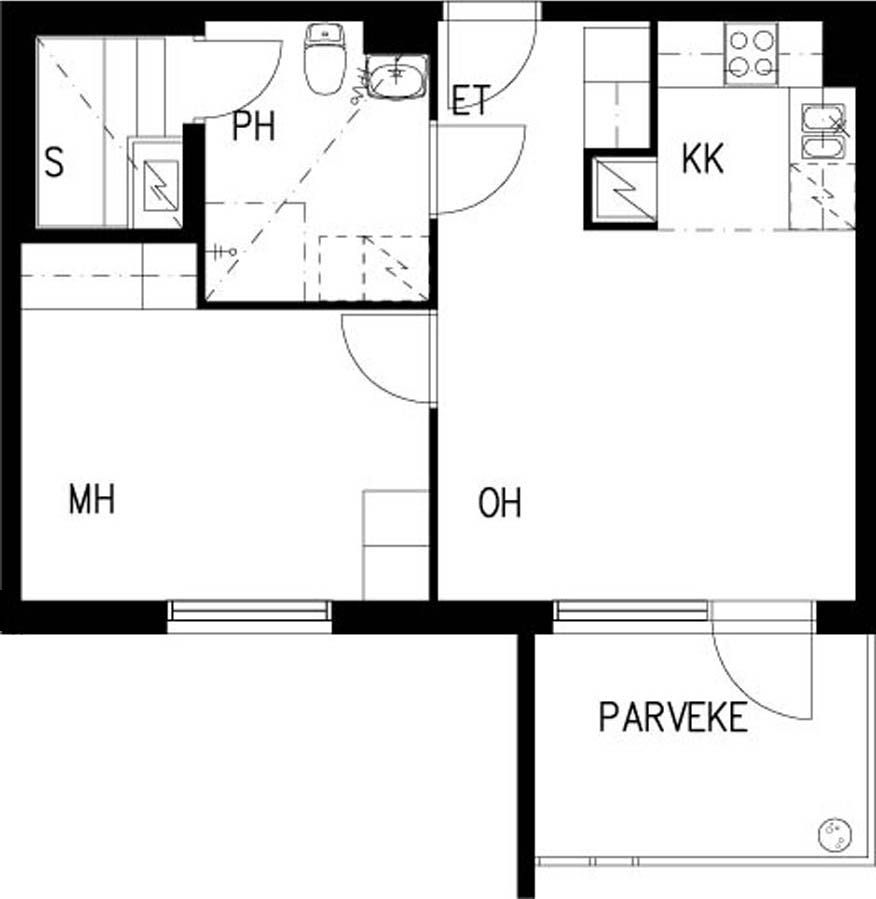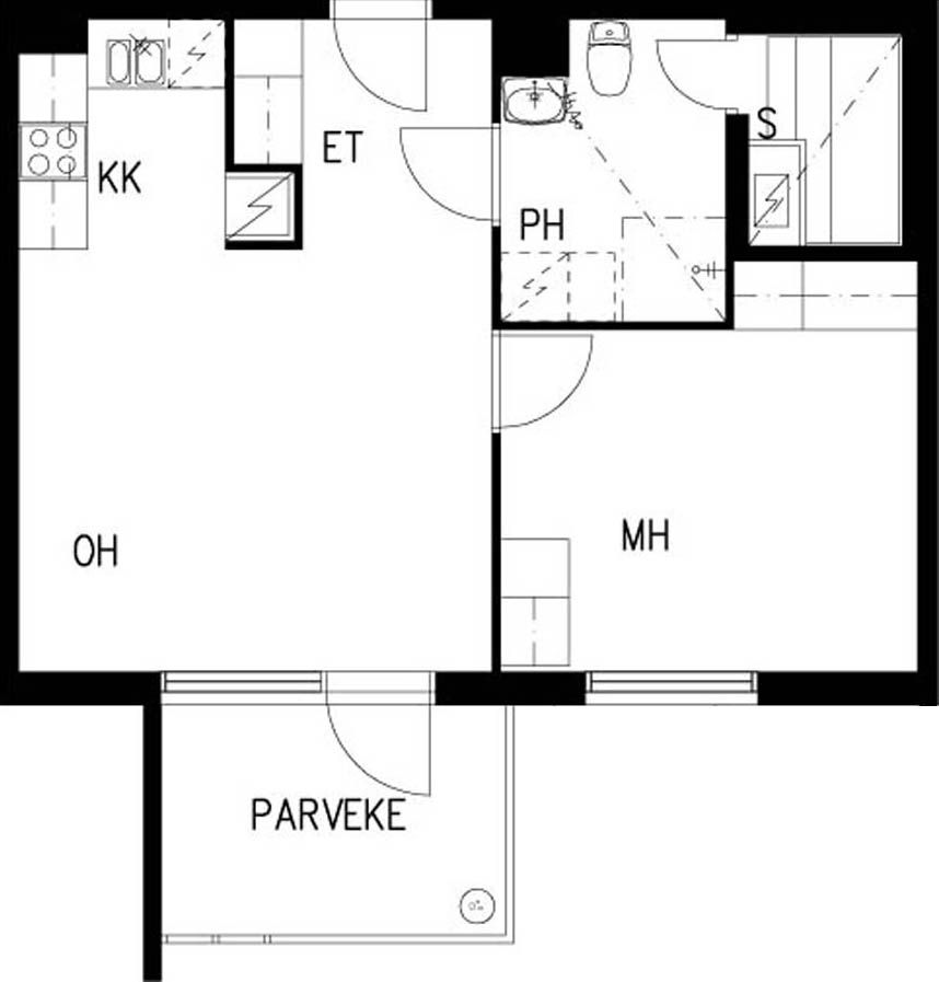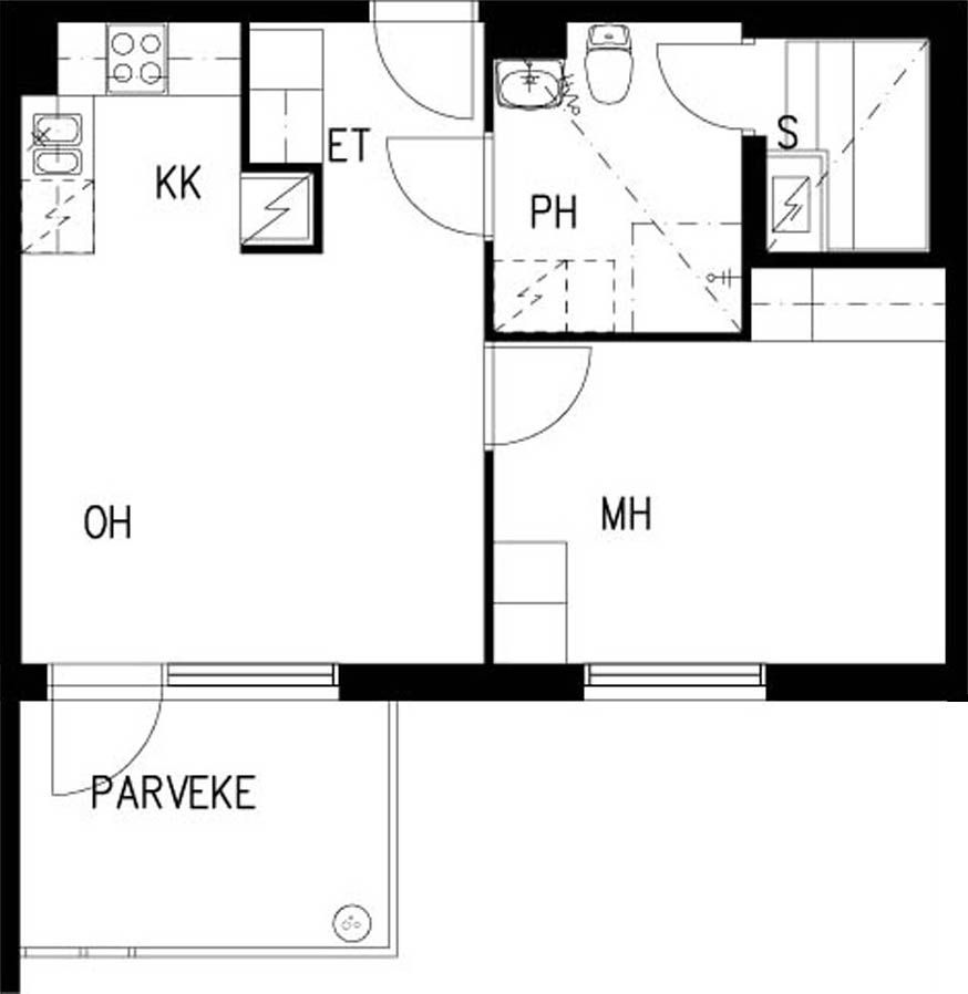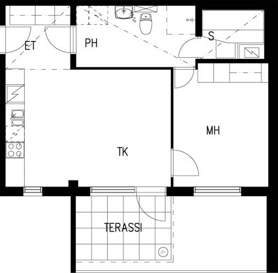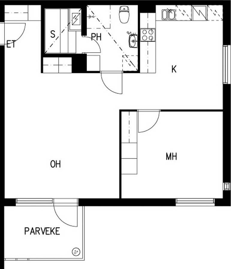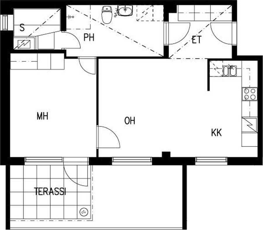 E 37 2h+kk+s 44,0 m² 4/4 Kerrostalo