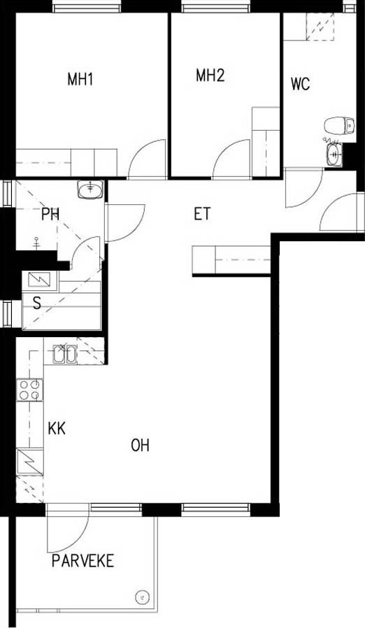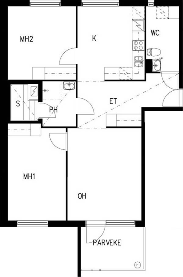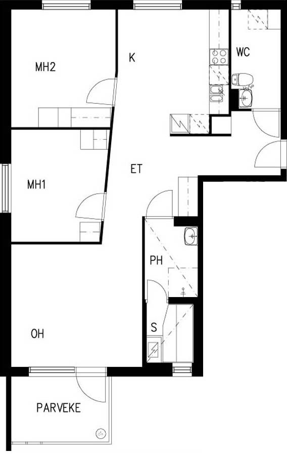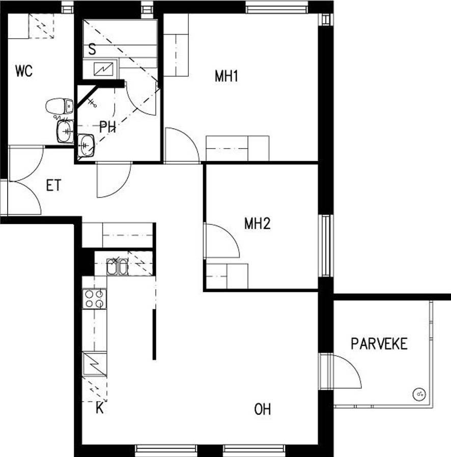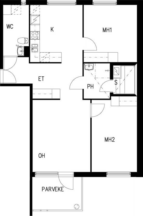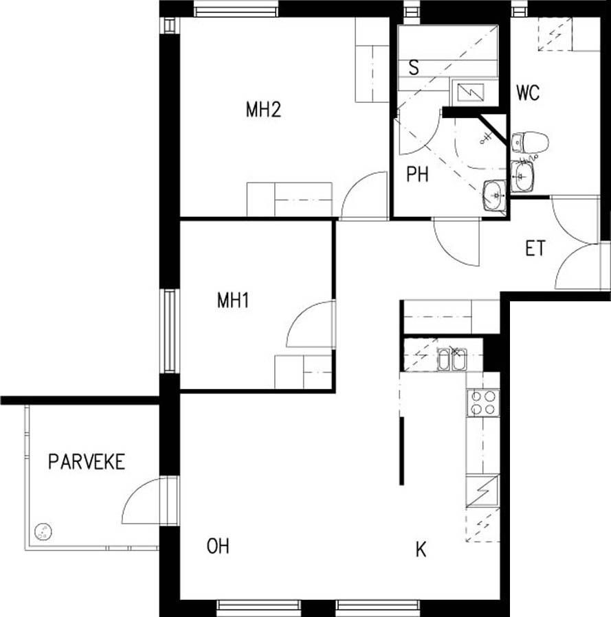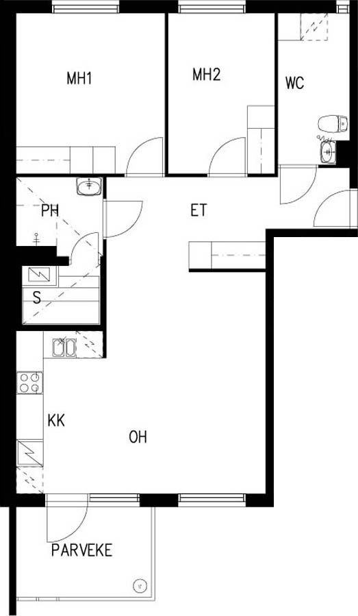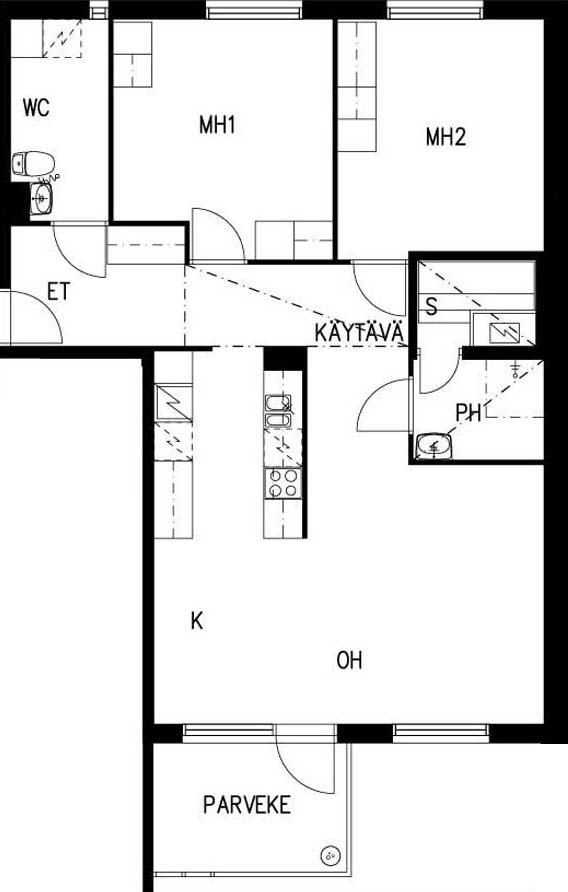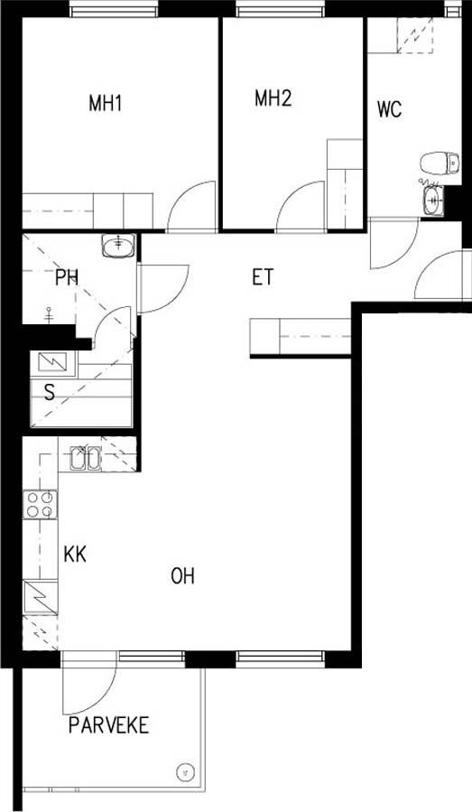 E 36 3h+kk+s 67,0 m² 4/4 Kerrostalo