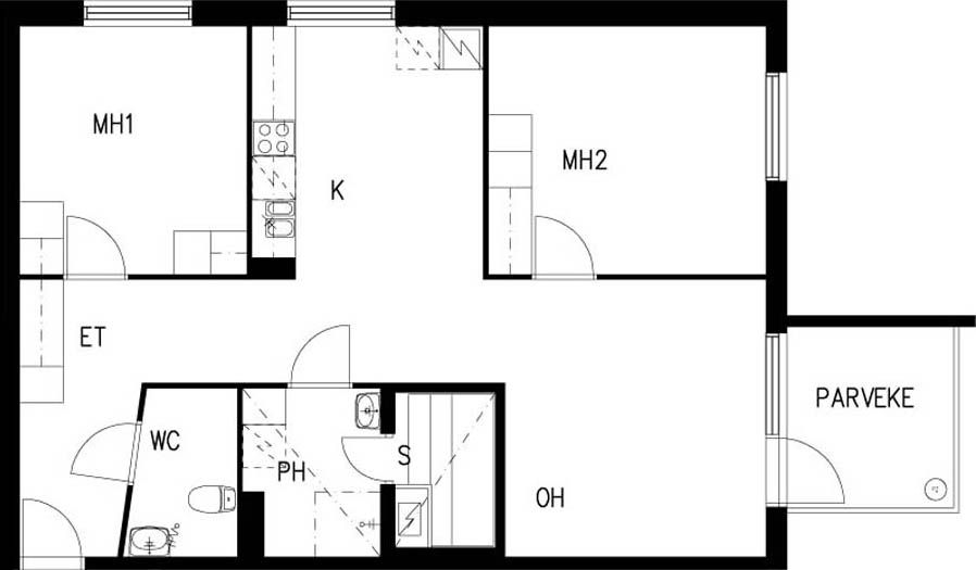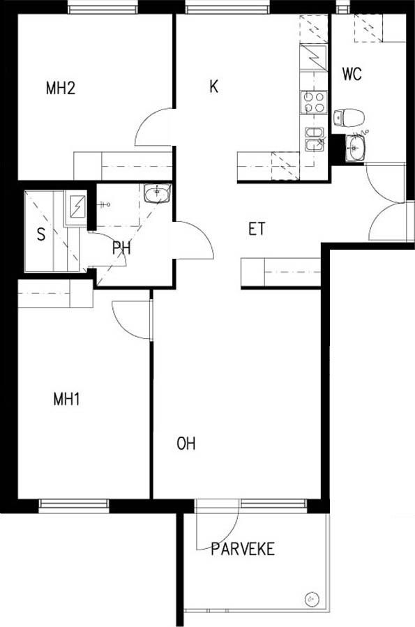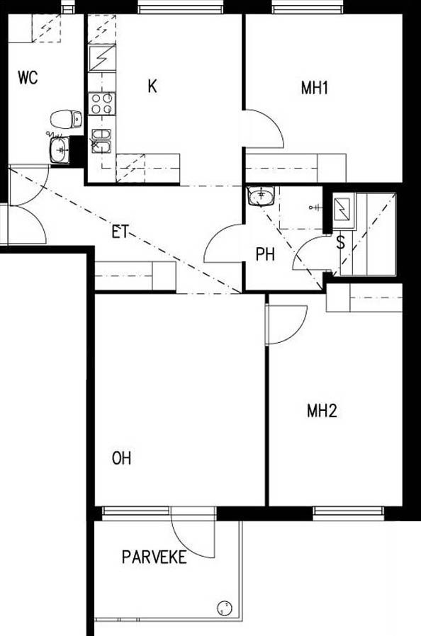 E 38 2h+k+s 61,0 m² 4/4 Kerrostalo