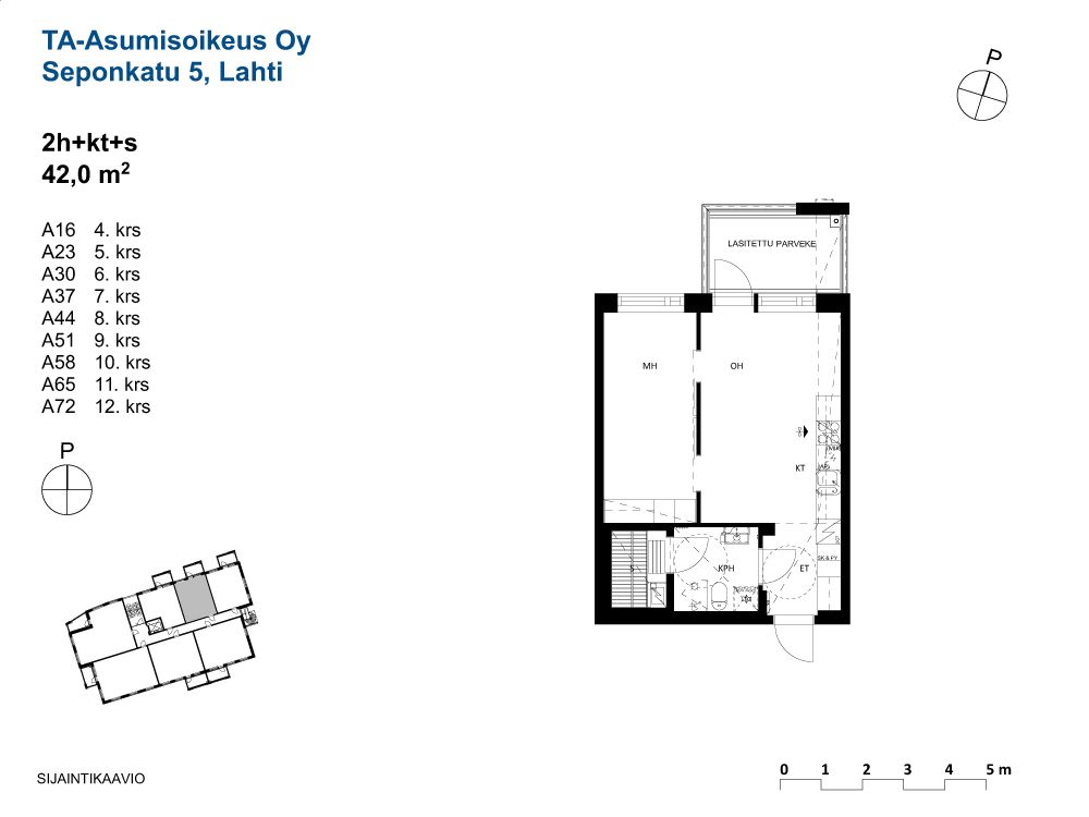 | Huoneistonumero | Huoneistotyyppi | m² | Kerros | Tila |