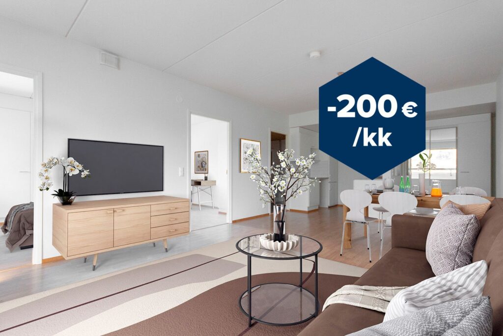 Make a contract now – you will receive the first month’s usage fee for €0. The benefit is valid until April 15, 2026 and only applies to vacant apartments and new customers. Water and parking fees as normal.