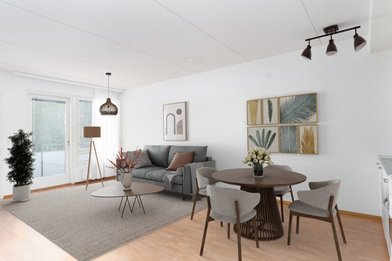 The living room has access to the balcony, where you can enjoy your morning coffee or relax at the end of the day. The spacious bathroom with a laundry cupboard and washing machine space makes everyday life smooth, and the private sauna offers the perfect place to relax. The peaceful housing estate is located next to excellent outdoor areas. Come and take a look and be amazed!