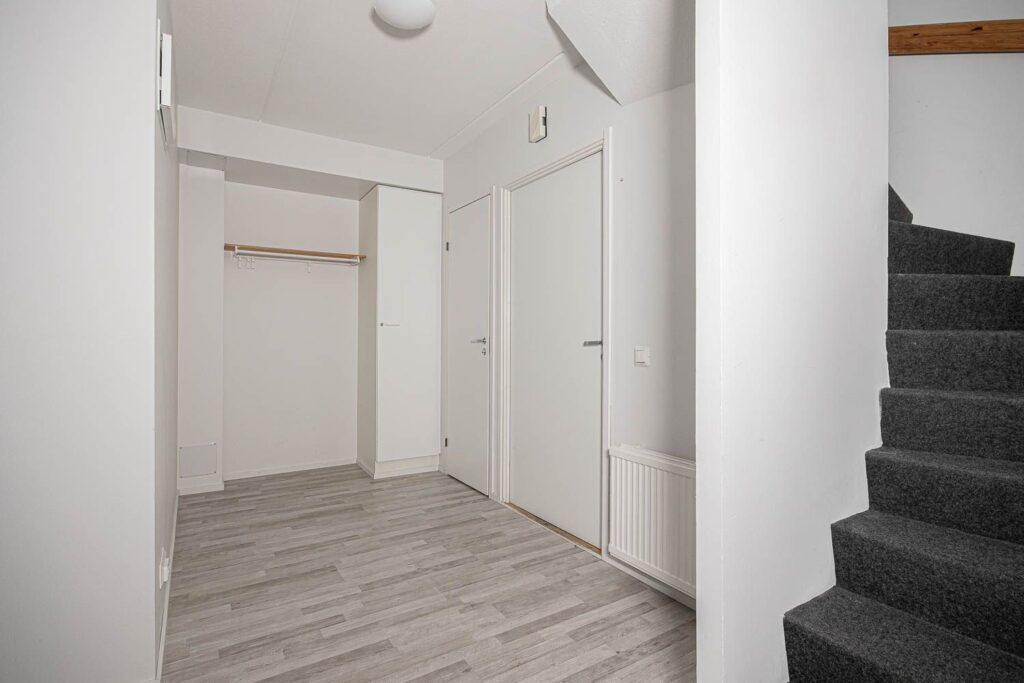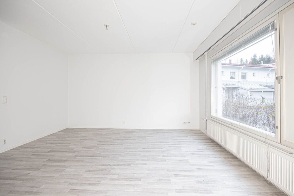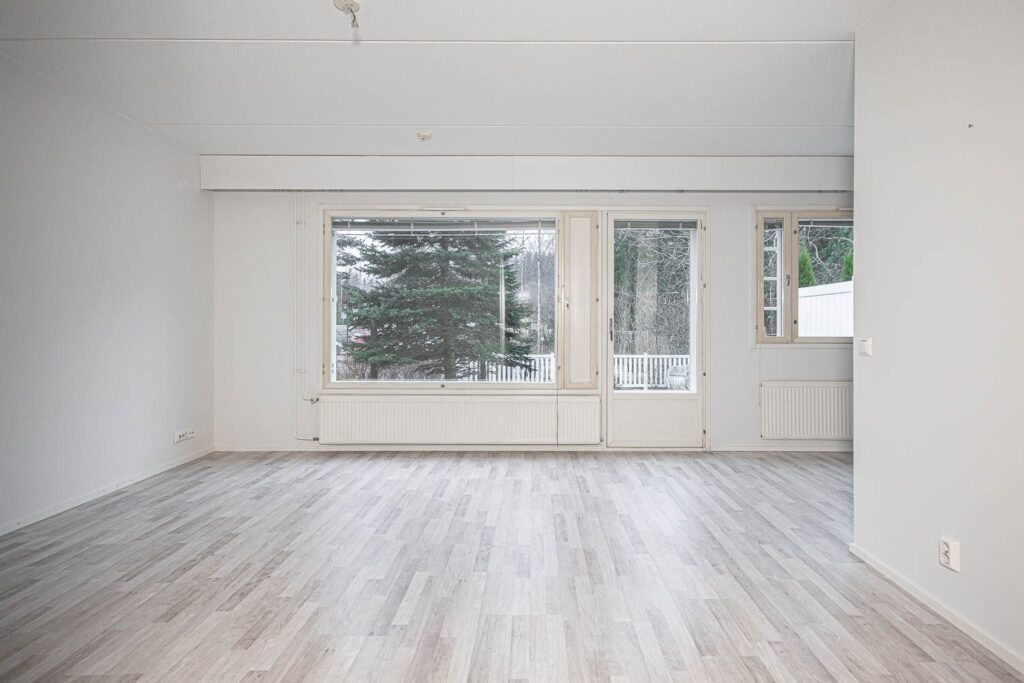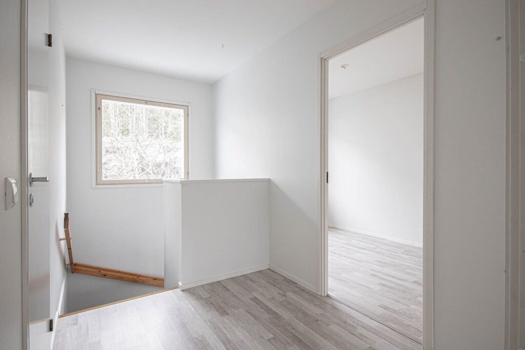 This apartment is suitable for a variety of uses, both for a larger and smaller family. The spacious living room and combined kitchen create an additional sense of space. There are three spacious bedrooms upstairs. There is a compact bedroom downstairs, which also works perfectly as a study or guest room. There is also a separate toilet downstairs. The apartment has a large yard, from which the view continues to a peaceful courtyard.
