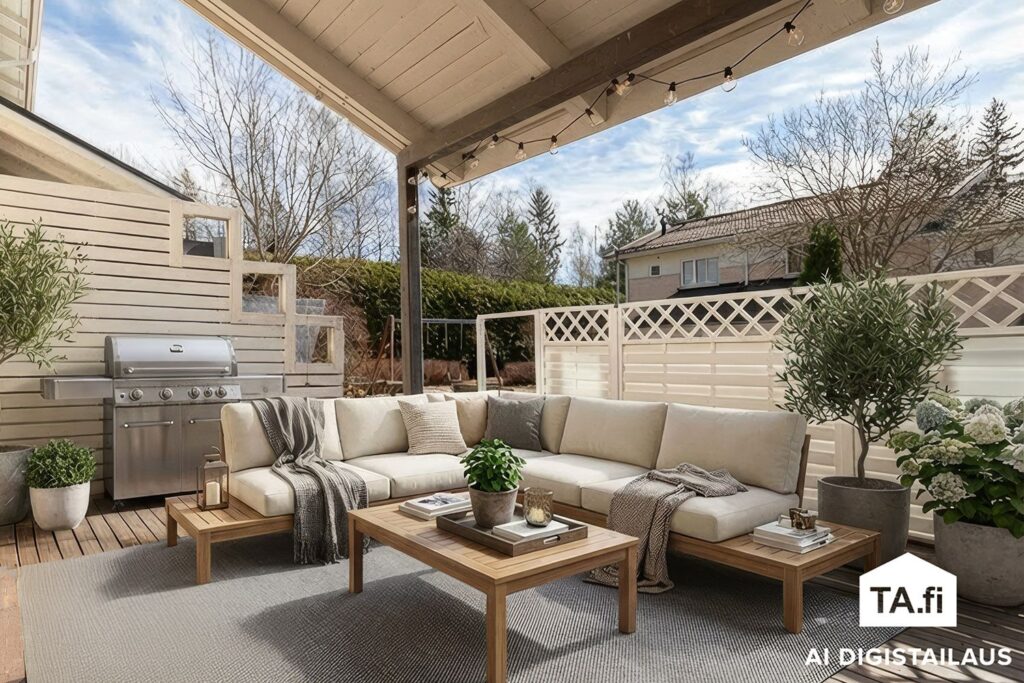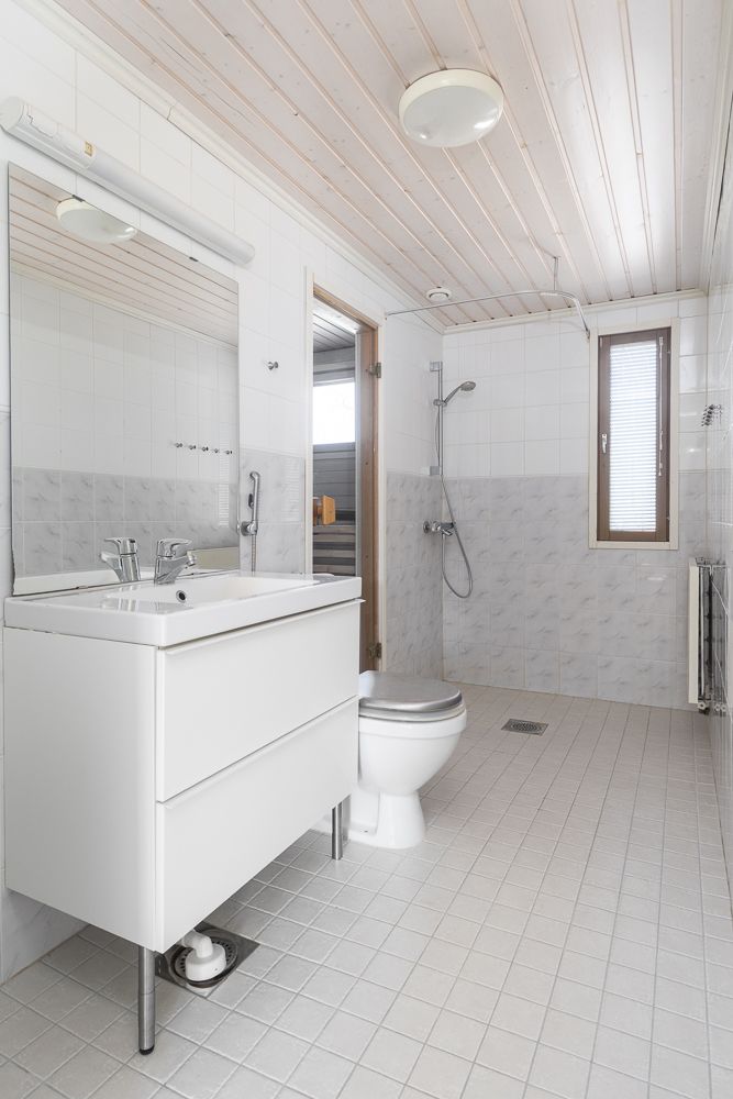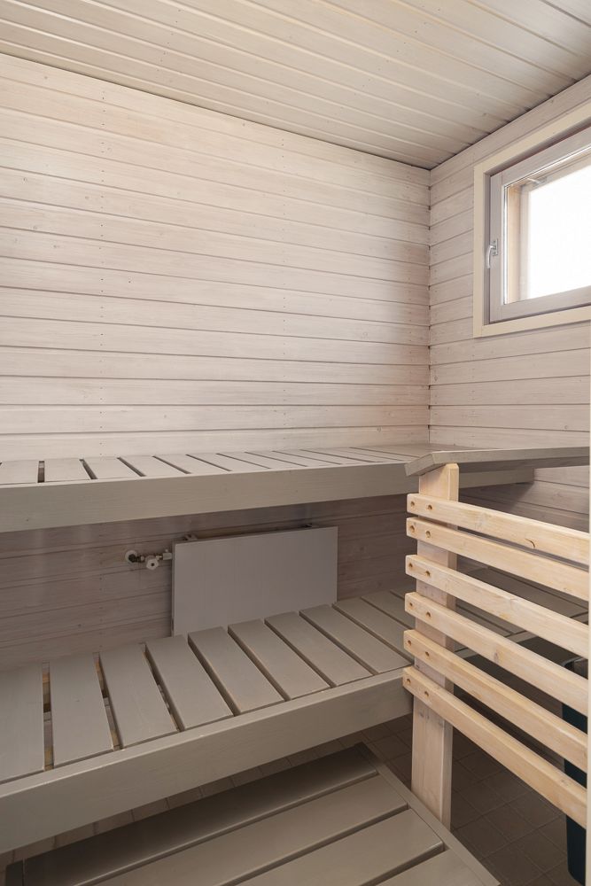 Upstairs, there are three bedrooms, a dressing room, a bathroom and a private sauna, which offer comfort and peace to everyday life. The functional floor plan allows for versatile use of the spaces, for example as work or hobby spaces. The outdoor storage also provides plenty of storage space.