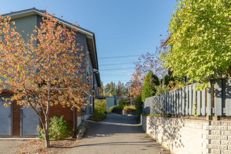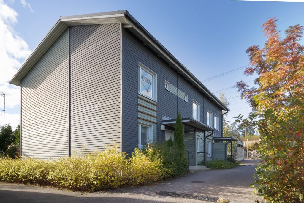 Pihkametsä 8 is a right-of-occupancy property consisting of semi-detached and terraced houses in Karhusuo, Espoo. There are a total of 22 apartments in the property. The apartments have their own storage room and the housing company has a separate outdoor equipment storage room. Karhusuo is a quiet area with mostly single-family houses near Nuuksio National Park. The nearest grocery store can be found 1.5 kilometers away in Bemböle and Ikea is about the same distance away. Comprehensive services can be found in Espoo city center, a few kilometers away. The nearest Finnish-speaking school is a couple of kilometers away, and the Swedish-speaking school is slightly closer. There is also a daycare center nearby. The area has excellent outdoor recreation and sports opportunities.