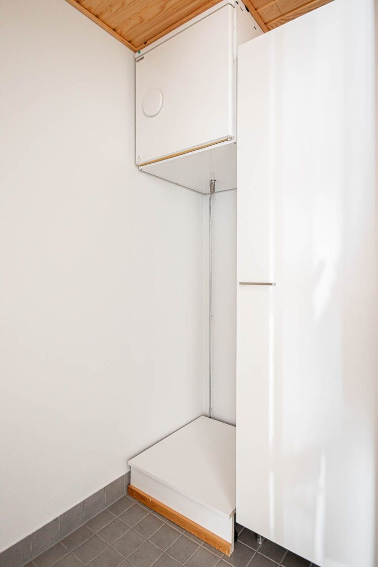 A well-grounded triangle with a terrace and balcony facing south. Space reserved in the kitchen for another refrigerator. In addition to the apartment-specific outdoor storage, there is a spacious storage room on the ground floor of the apartment.